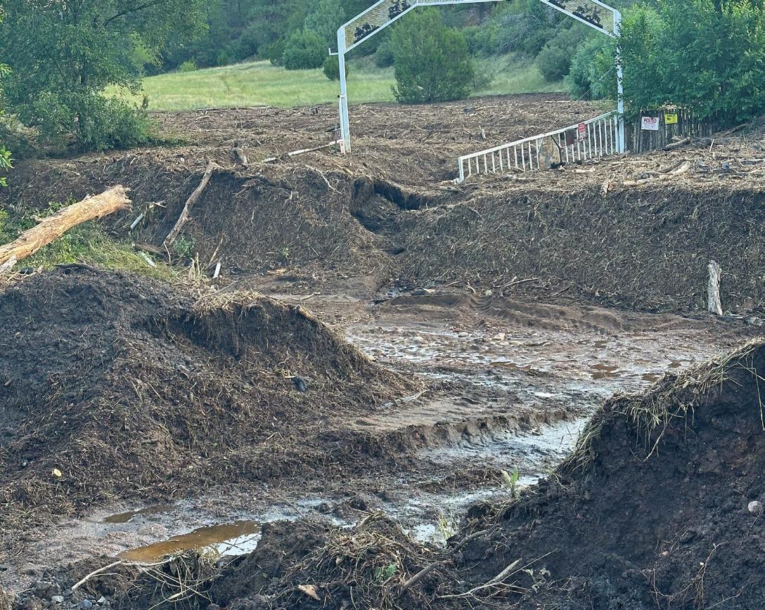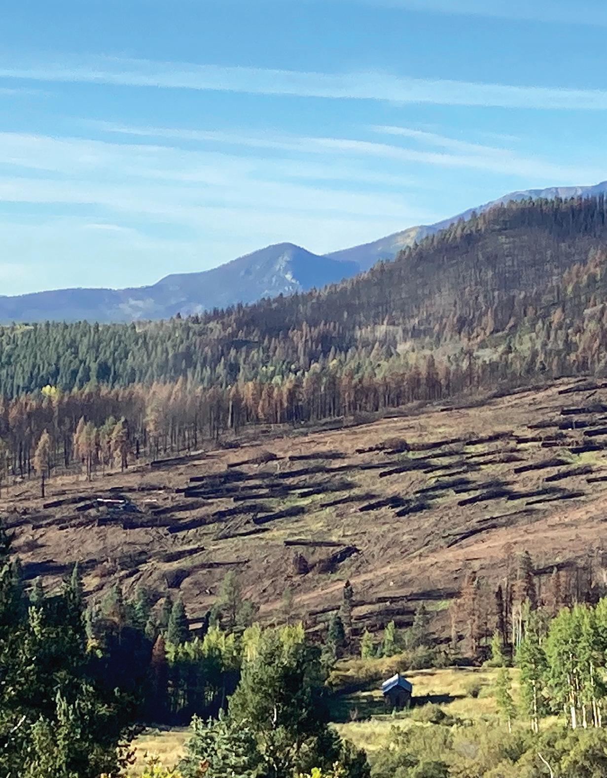El agua es vida (water is life) is a commonly heard phrase in New Mexico, and a watershed approach centered around managing water is vital to the economy and culture. However, almost paradoxically, fire, fed by drought, leads to too much water. For years after a wildfire, flooding is the biggest threat to land, lives, and livelihoods in and around the affected area. Soils become hydrophobic (water repelling) after a hot fire, and fewer living trees and less surface vegetation exist to take up the water. In 2022, almost every afternoon during the monsoons, floods inundated our valley and much of the region, a situation that could continue for years. In the wake of fire, much of land management becomes about managing too much water.