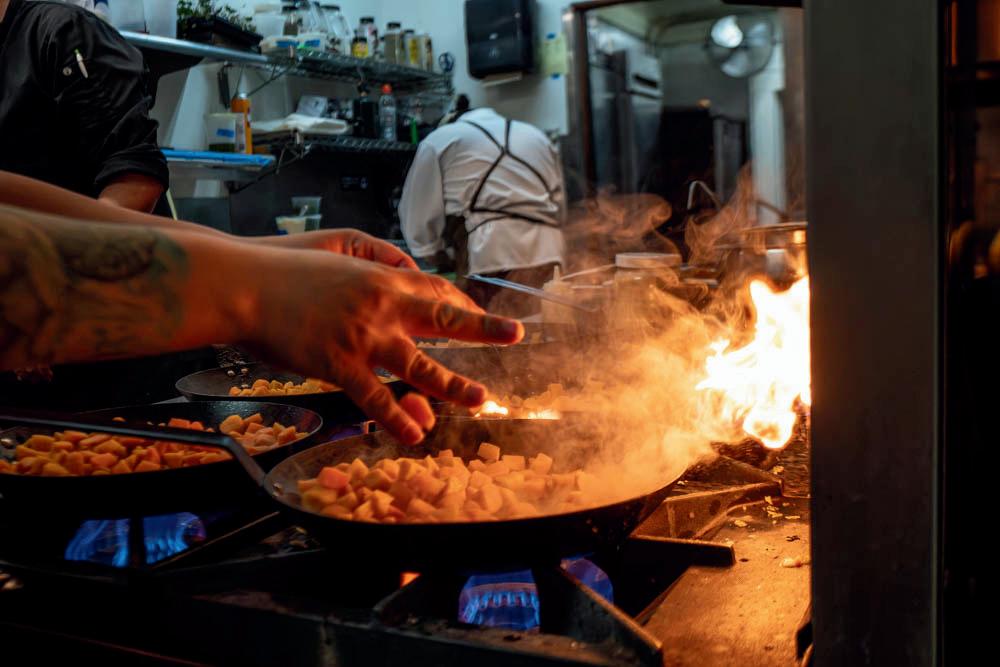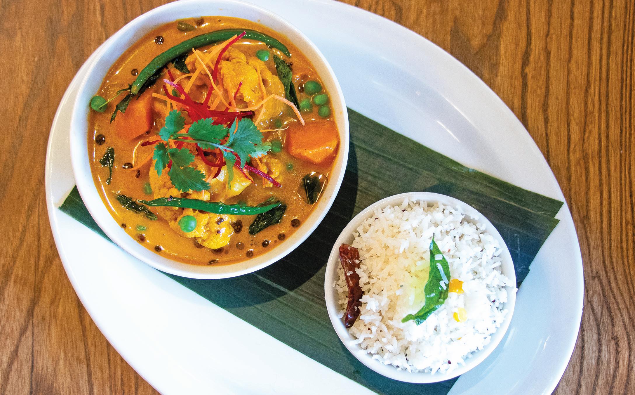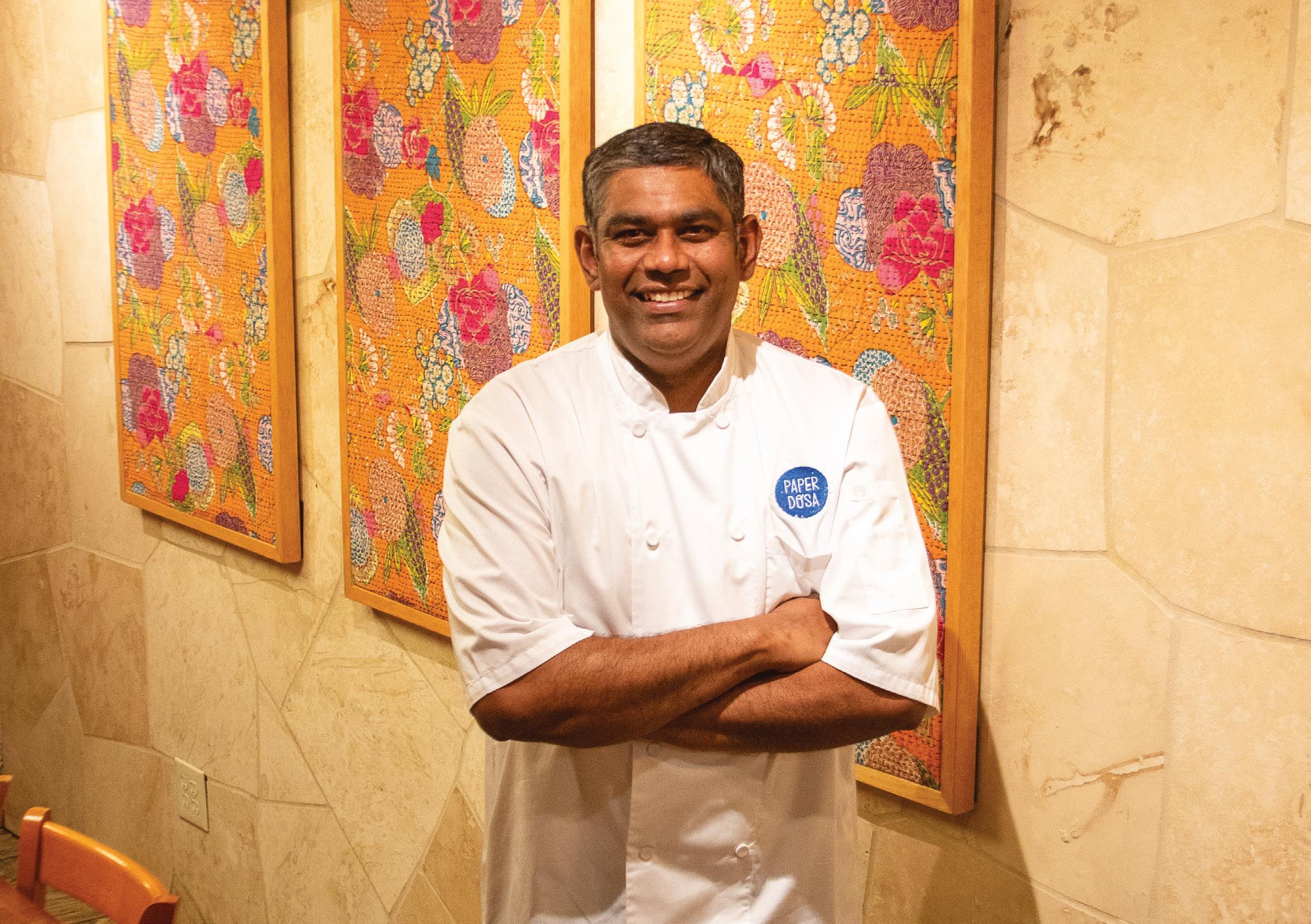 “No one in my family eats out,” says Paper Dosa’s chef Paulraj Karuppasamy, speaking about the Indian home in which he lived until going to college. “I was raised vegetarian. South Indian food has a rich tradition in vegan and vegetarian dishes, and I am inspired by vegetables.” He earned a bachelor’s degree in catering science and hotel management, then began working at a resort in the Maldives, where he was exposed to the delicious curries of Sri Lanka. After several