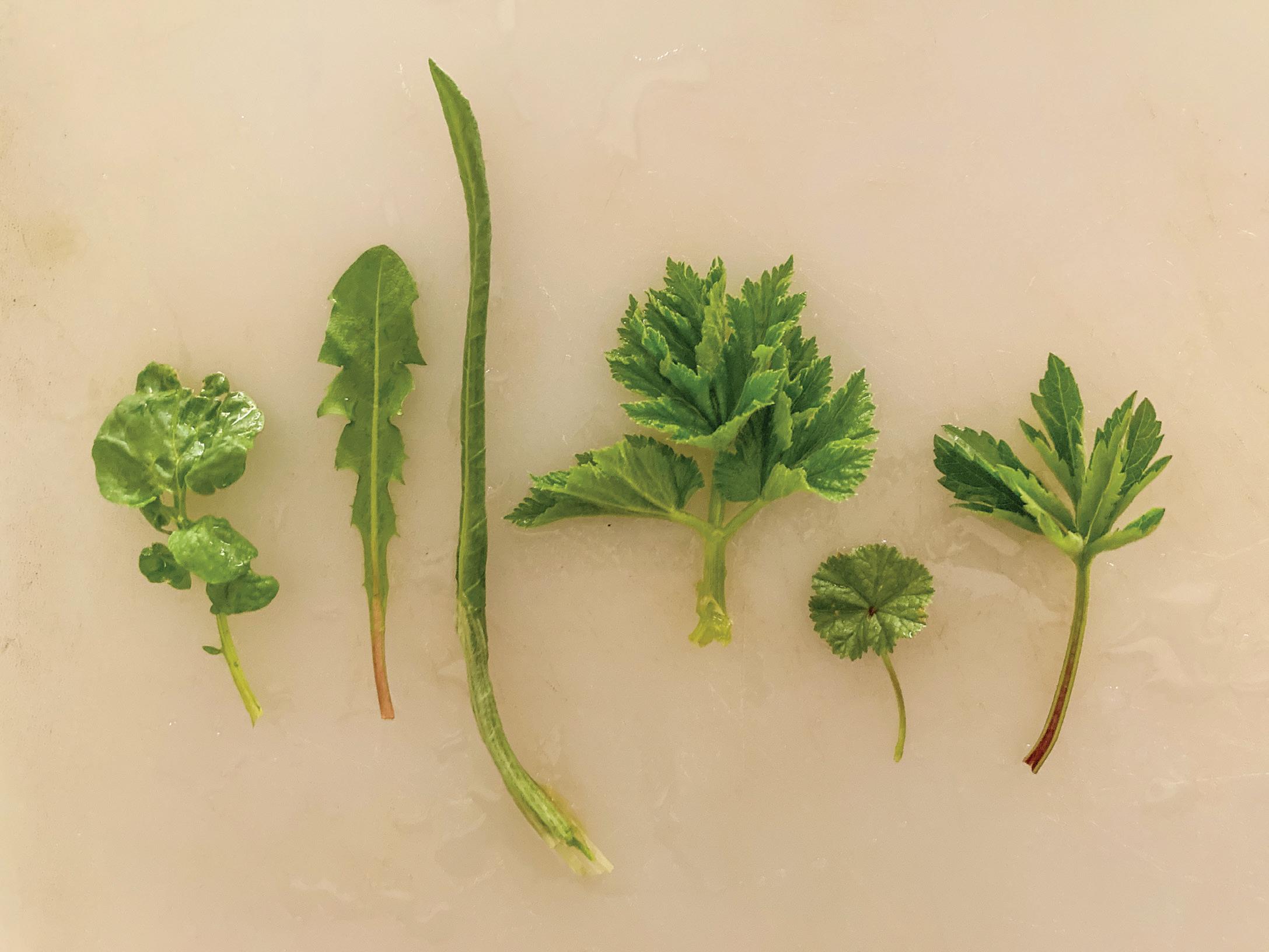 If you’ve harvested winter cress, blanch it for a few minutes to lessen the bitter flavor. I also briefly blanch mallow and cow parsnip greens to smooth out their hairy texture. After this preliminary prep, chop your spring greens and add them to the cooked alliums. Stir them over medium heat just long enough to reduce and wilt all the greens. Add 1/2 teaspoon salt, taste, and add more salt if necessary.