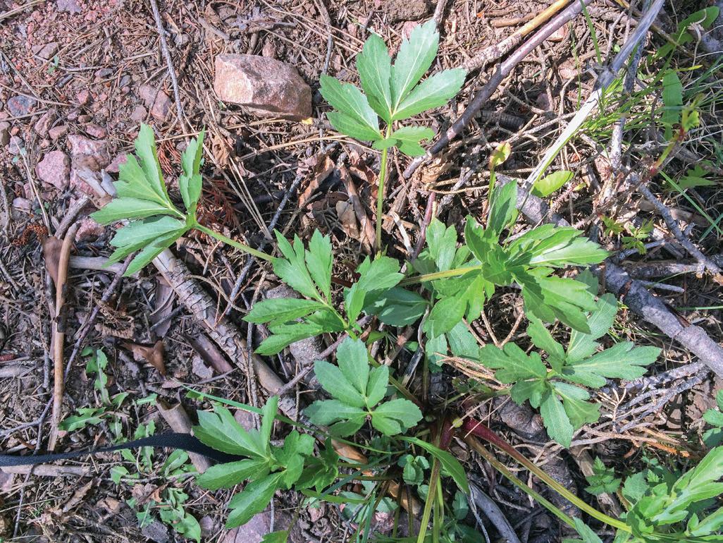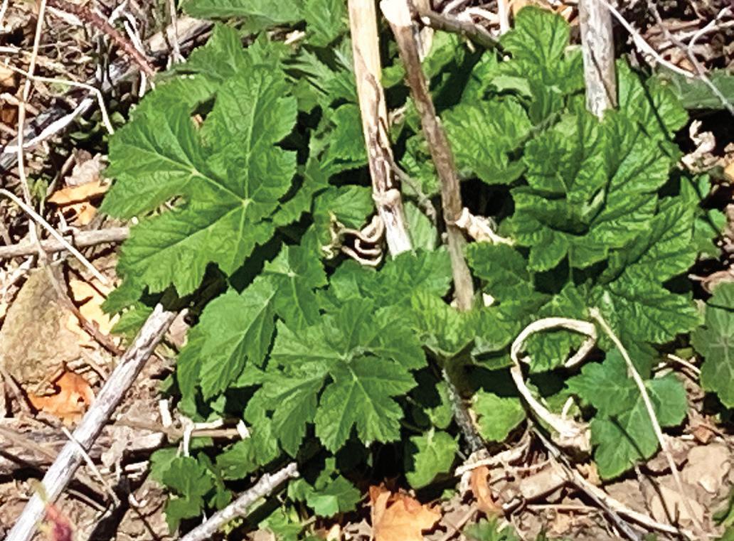 • Spring growth forms a basal rosette of leaves, each with three deeply divided lobes.