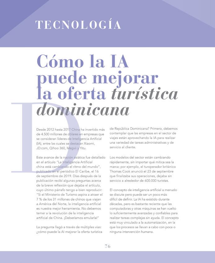 En moda, Loren Fernández habla de la magia del color, de cómo la colorimetría influye en las emociones y en la forma en que nos proyectamos, según el color de los atuendos que usemos; y Anita González Sigler pasa revista a la llegada al país de la más reciente colección de Mina Ro Mina, inspirada en la flora de República Dominicana, en el azul de nuestro cielo y en el ámbar exclusivo que poseemos.
