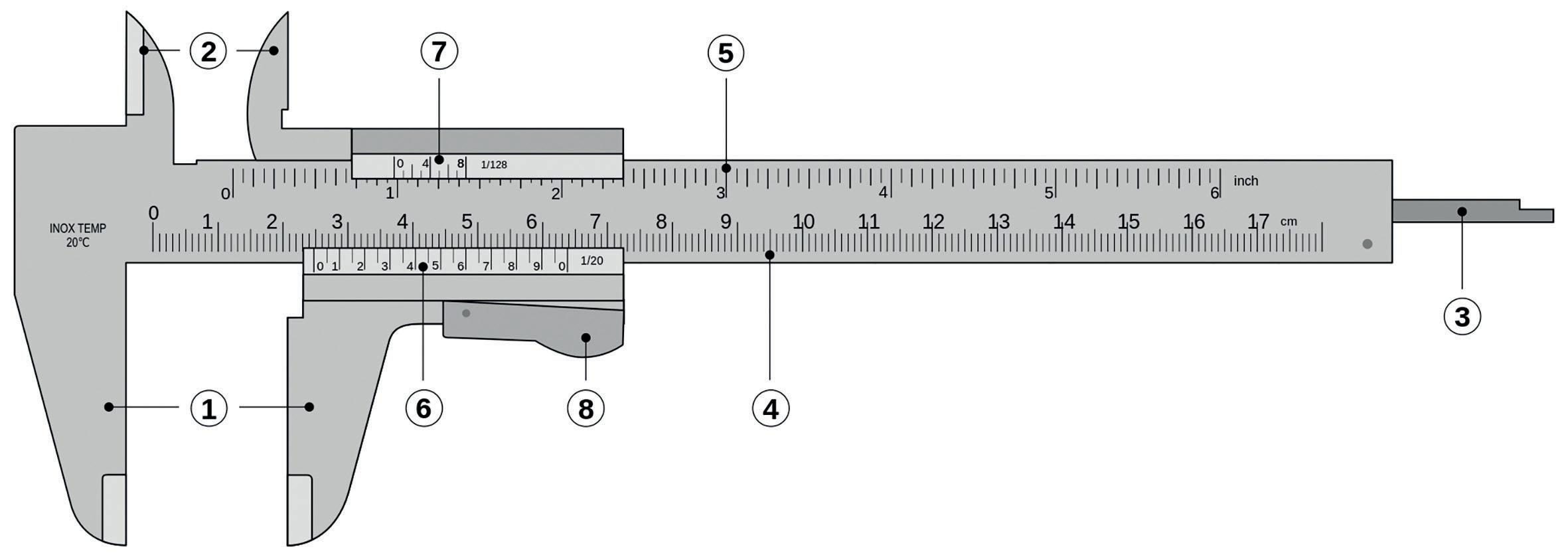 2.22. Indica cómo leerías una medición en un pie de rey analógico de nonio.