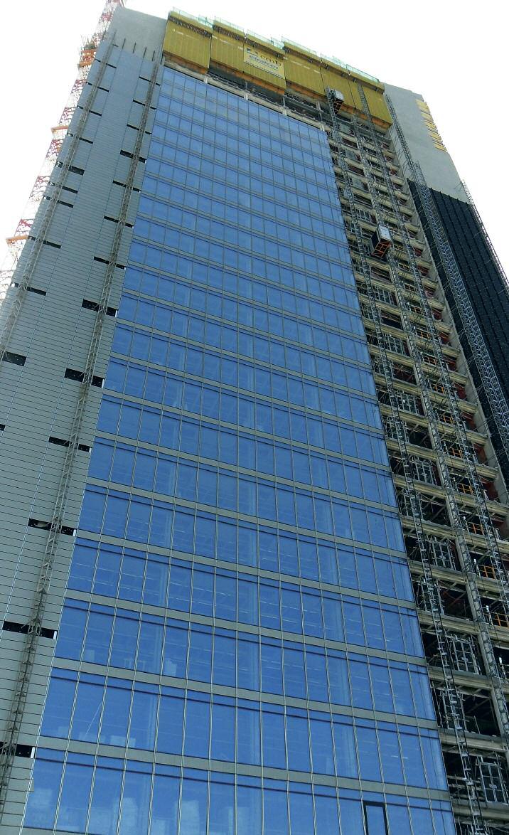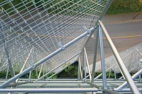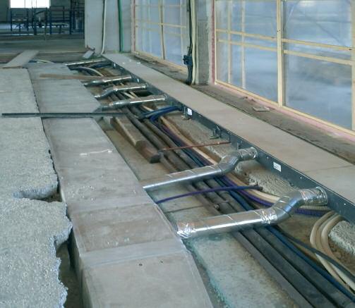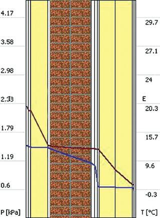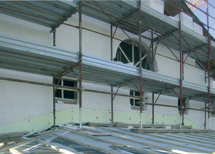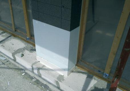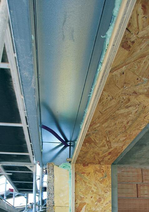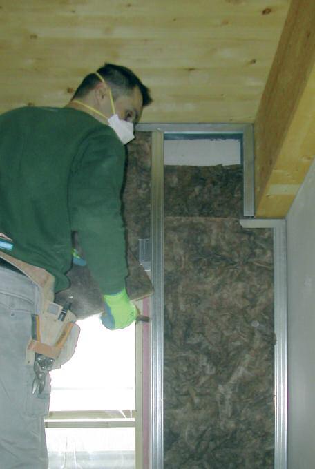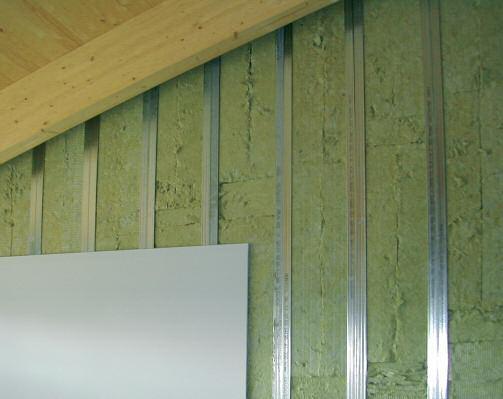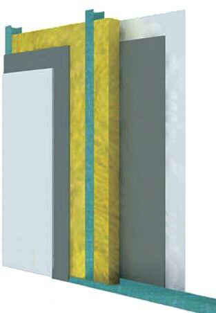 • Pannello in isolante minerale (10 cm), trattato con resina termoindurente e rivestito con velo di vetro su una faccia, posato tra montanti metallici