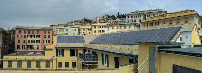 I moduli fotovoltaici, per una potenza di picco di 19,87 kWp, sono in grado di generare 22 MWh di energia all’anno I moduli utilizzati sono di diversa tecnologia: in particolare, sono stati installati 42 moduli policristallini, 60 celle da 235 Wp, sul tetto piano, 43 moduli in silicio monocristallino, 24 celle da 93 Wp, integrati architettonicamente nel tetto a falda e 48 moduli a film sottile CIGS da 125 Wp in tre stringhe da 12 moduli sul tetto piano