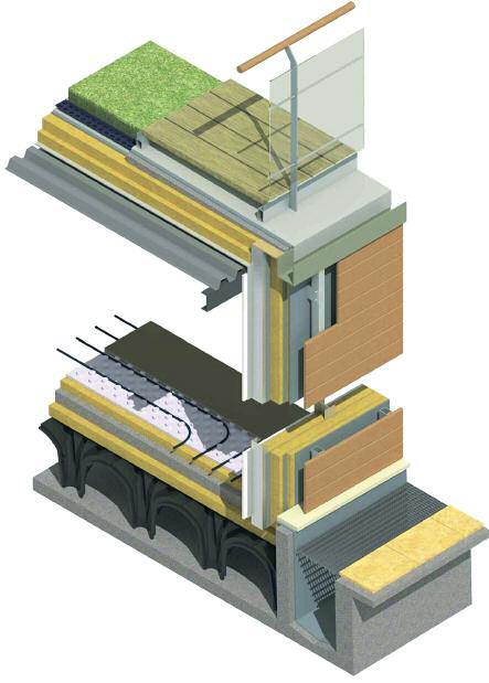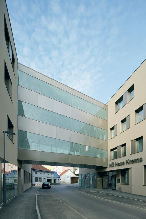 04. Il più grande edificio passivo per uffici austriaco, progettato da AllesWirdGut e feld72, si trova a Krems e raggruppa diversi uffici pubblici in un unico luogo nel centro cittadino La forma compatta suddivisa in 3 volumi, l’attenzione all’involucro e un’impiantistica performante consentono un consumo per riscaldamento inferiore ai 10 kWh/m2a L’utilizzo di ecocemento ha permesso di evitare più di 1 000 tonnellate di emissioni di CO2 www.alleswirdgut.cc; www.feld72.at