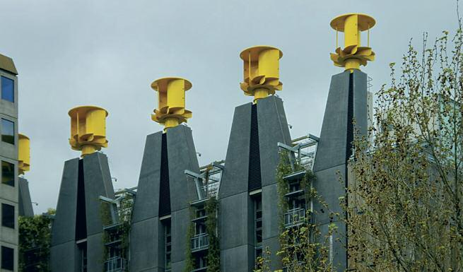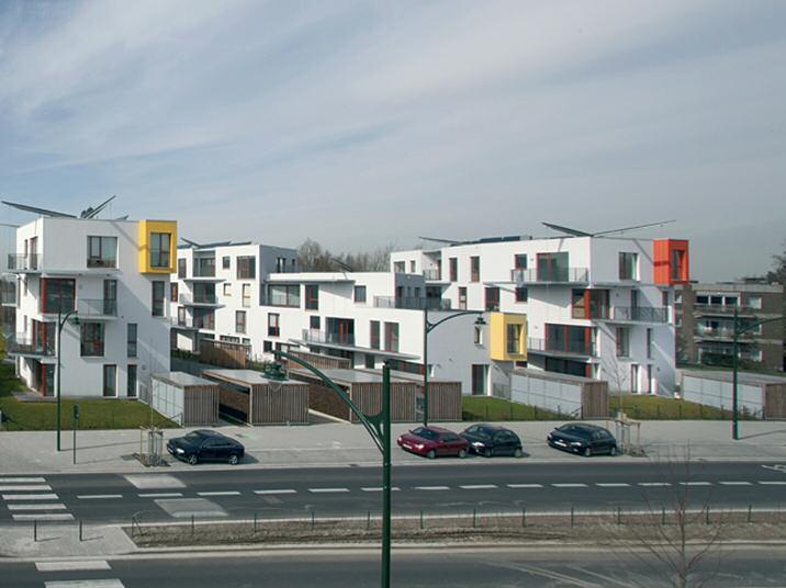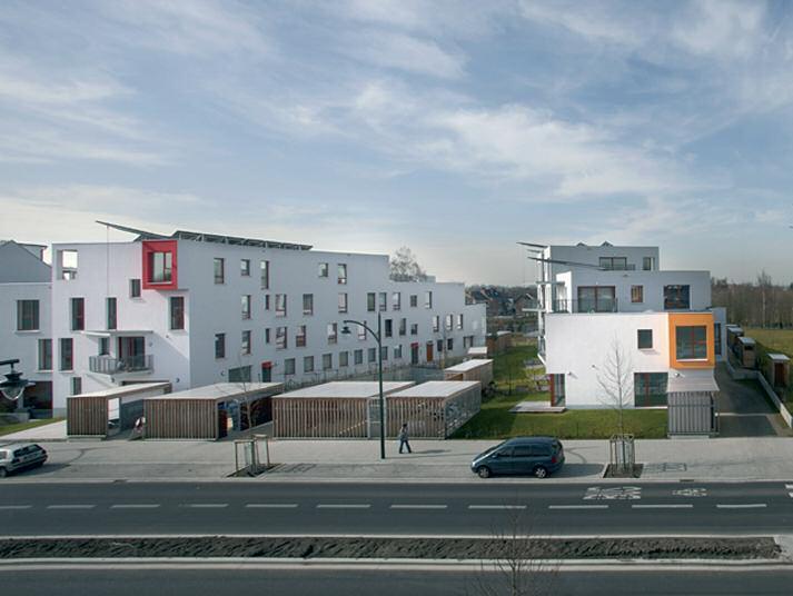 02. Inserito in un programma urbanistico più vasto che comprende la realizzazione di 5 000 appartamenti, il complesso di Bruyn Ovest a Bruxelles accoglie 79 alloggi a uso sociale. L’accurata scelta dei materiali, la cura dei dettagli e una VMC a doppio flusso garantiscono un consumo di 12 kWh/m2a Pannelli solari in copertura producono l’acqua calda sanitaria mentre quella piovana viene raccolta in cinque cisterne per essere riutilizzata nell’edificio www.pblondel.be