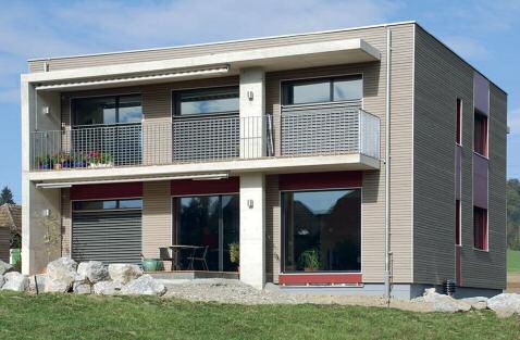 01. La prima casa certificata con il nuovo sistema MinergieA-Eco si trova a pochi km da Berna Isolata con fiocchi di cellulosa e rivestita internamente con pannelli in argilla e intonaco dello stesso materiale, l’edificio ha collettori solari sul tetto per l’ACS, un impianto fotovoltaico connesso in rete che fornisce energia anche per l’impianto di VMC con recupero di calore e la predisposizione per l’allacciamento a un mini impianto eolico. Per i mesi più freddi è previsto l’intervento di un stufa a pellet www aab-architekten ch