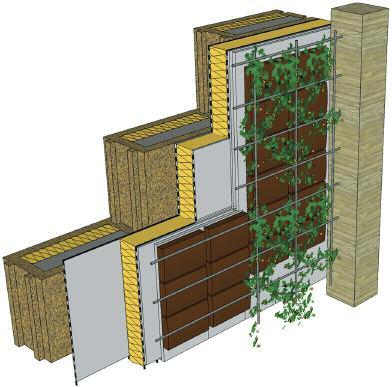 • Pannello in isolante minerale (10 cm), idrorepellente, trattato con resina termoindurente, posato tra montanti metallici