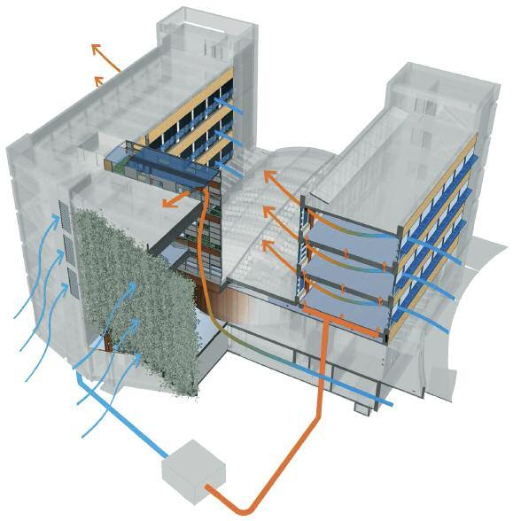 03. Lo standard passivhaus (10 kWh/m2a per riscaldamento) del nuovo edificio della facoltà di Antropologia dell’Università J. Gutenberg di Magonza (D), progettato dallo studio Bernhardt+Partner (arch Andreas Hammer), è stato raggiunto anche grazie alla presenza di scambiatori di calore altamente efficienti La successiva installazione di un impianto FV permetterà all’edificio di raggiungere anche il nuovo standard europeo “Net Zero Energy Building” www bp-da de