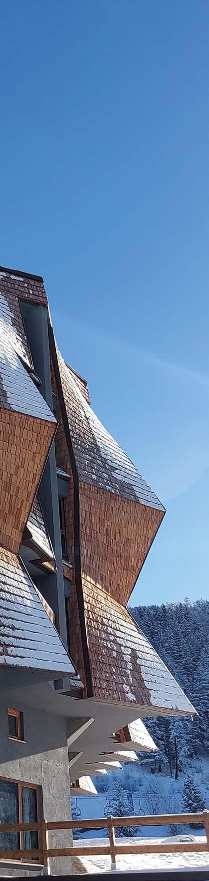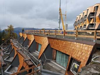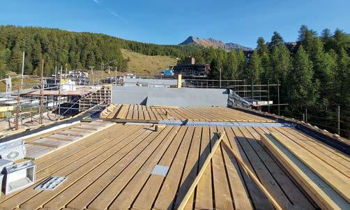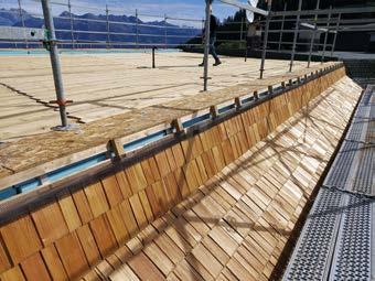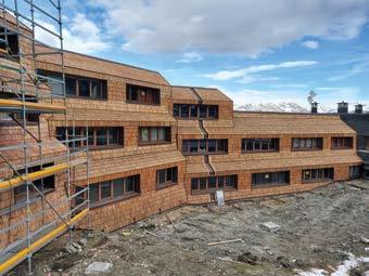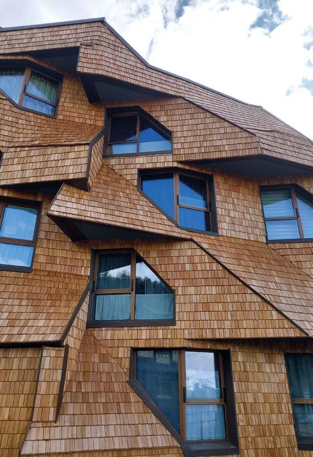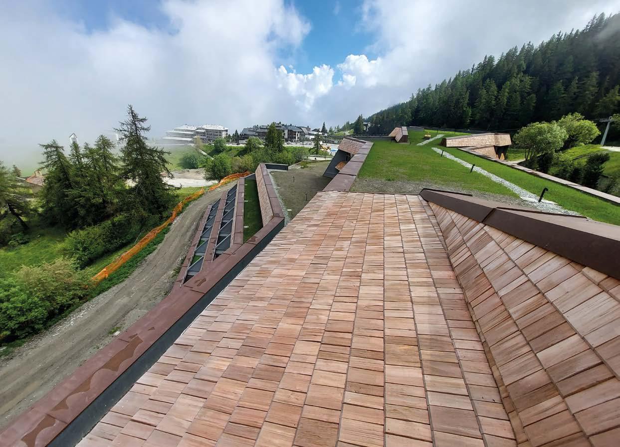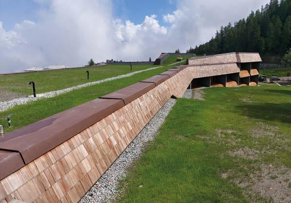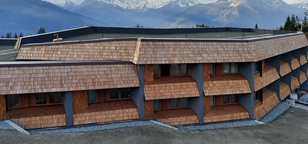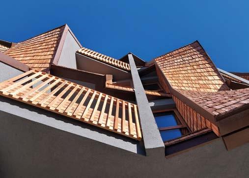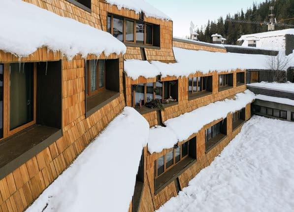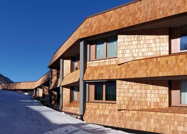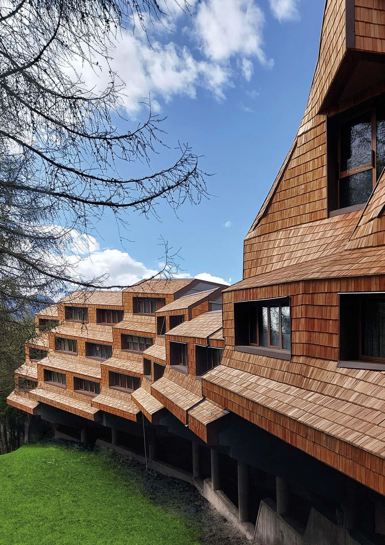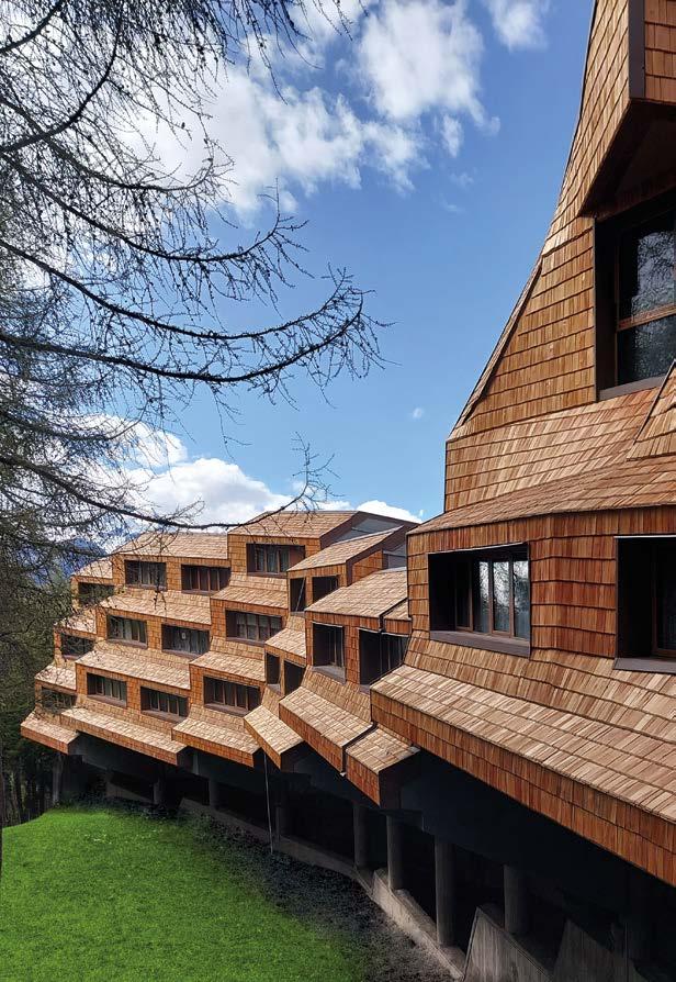 sola sostituzione di porzioni di scandole ammalorate e al rifacimento degli strati impermeabili delle coperture piane e dei giardini pensili, il complesso residenziale di Pila si presentava, prima del processo di riqualificazione, in discrete condizioni, pur necessitando di interventi più organici. L’obiettivo era ridurre sensibilmente i consumi energetici e utilizzare tecnologie che minimizzassero la gestione futura così da consegnare alle generazioni future un’importante testimonianza di architettura contemporanea.