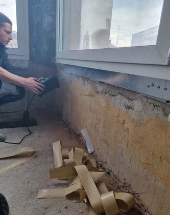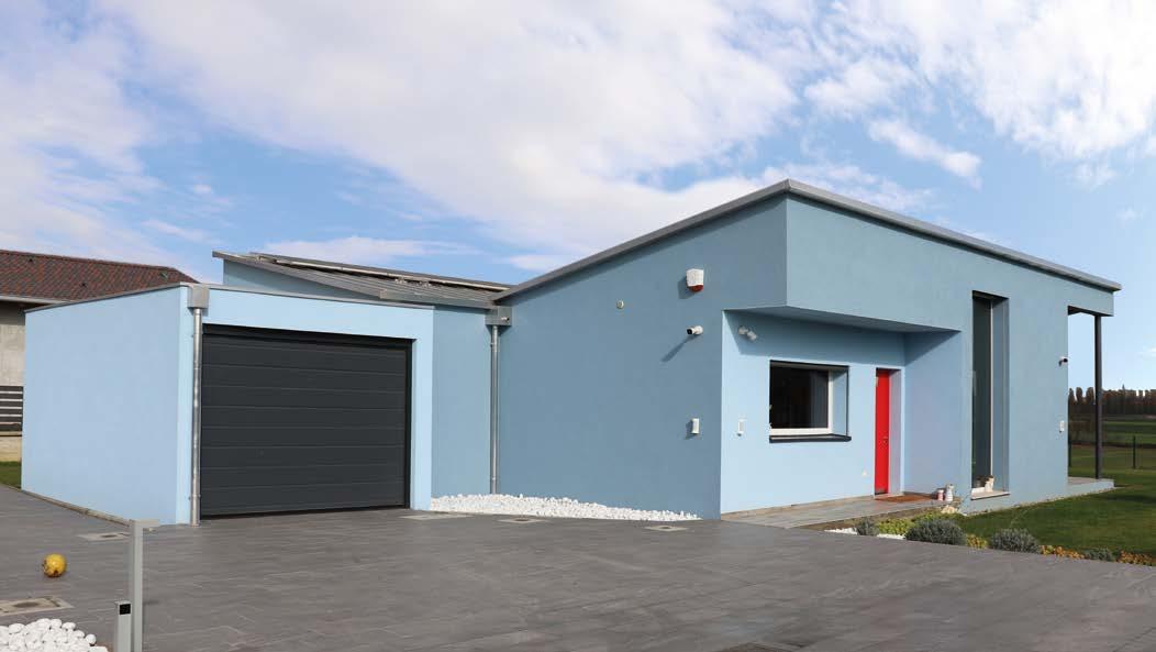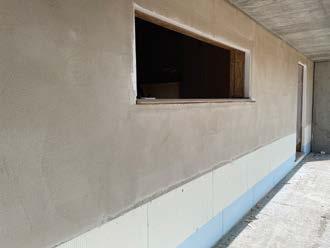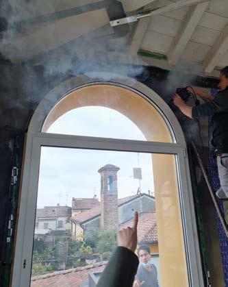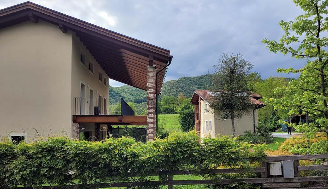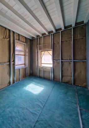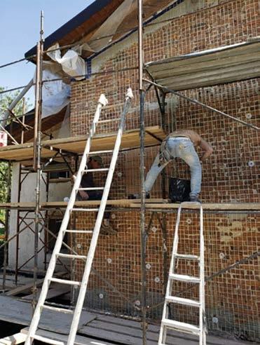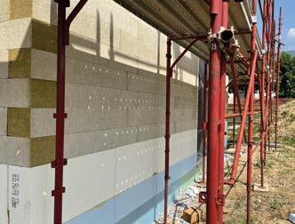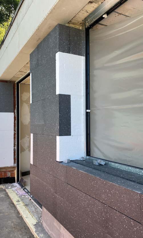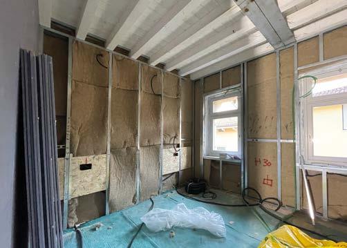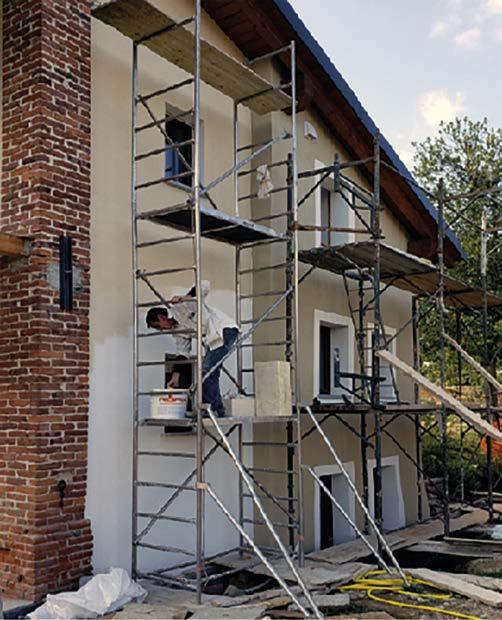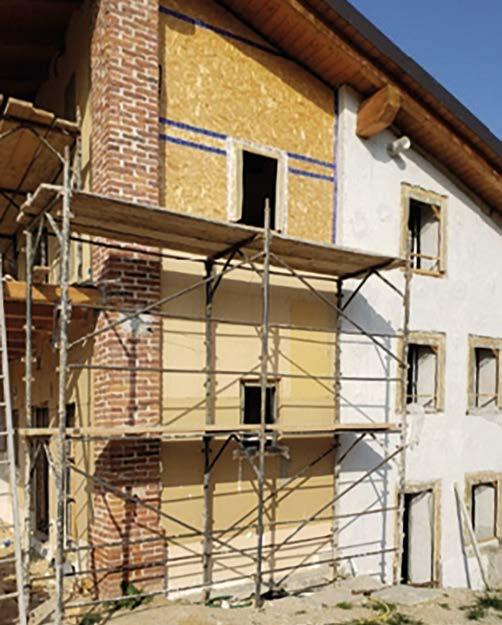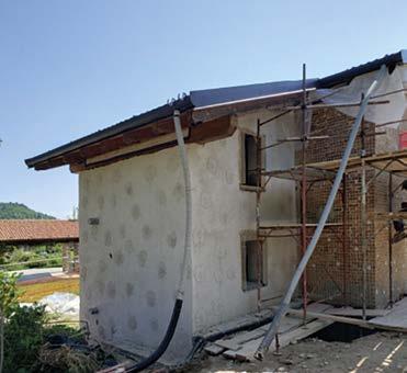 L’edificio esistente è stato ristrutturato e riqualificato energeticamente mediante la posa di un cappotto con finitura a intonaco, mentre per la nuova casa in struttura metallica a secco è stato scelto un isolamento poliuretanico applicato a spruzzo.