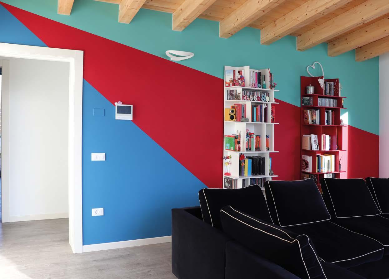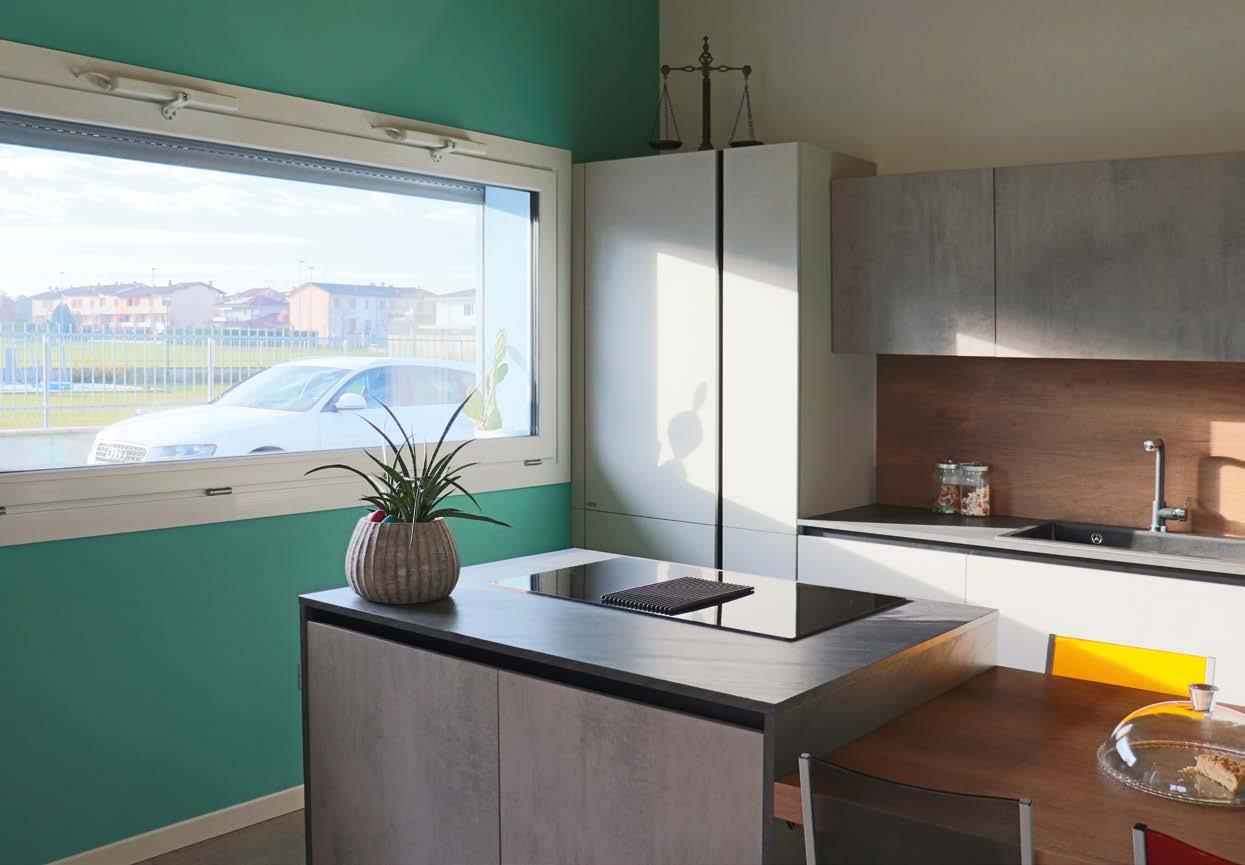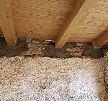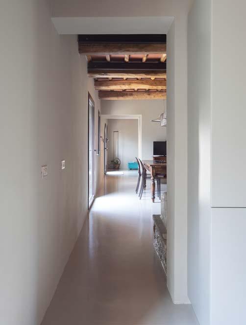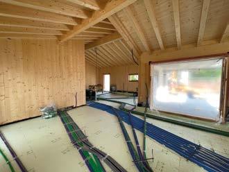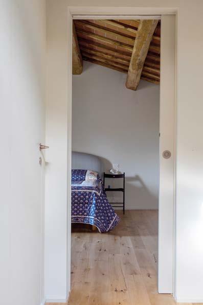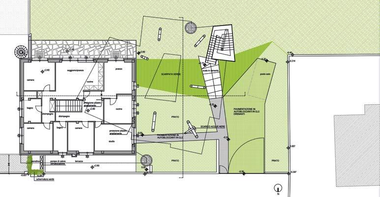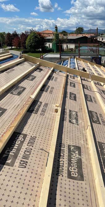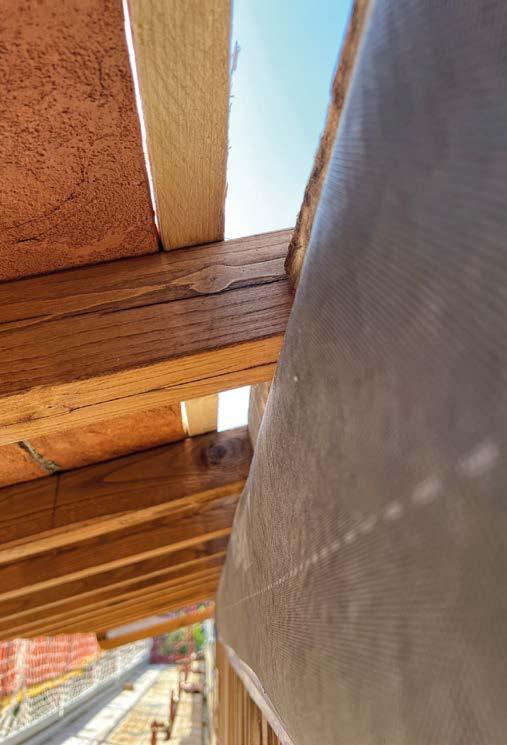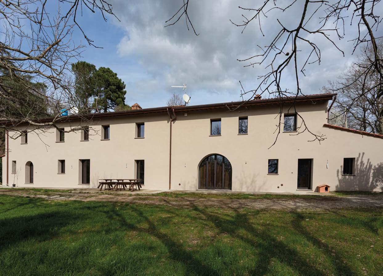 naturali e in piena linea con i principi della bioarchitettura, scegliendo un cappotto in fibra di legno e in silicato di calcio, strutture in legno per i vari orizzontamenti e le pareti esterne, lastre di vetro cellulare (vetro riciclato) per la coibentazione dei solai controterra e intonaci interni ed esterni in calce naturale. Unica eccezione, i serramenti in materiale plastico con finitura “effetto legno”, scelti dalla committenza per una maggiore durata nel tempo e minore manutenzione.