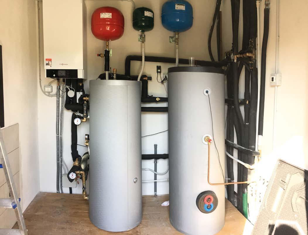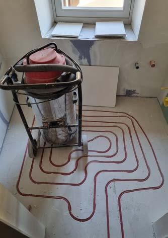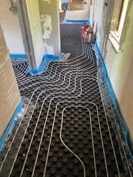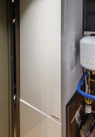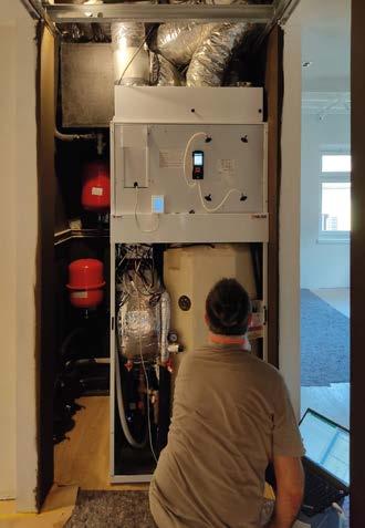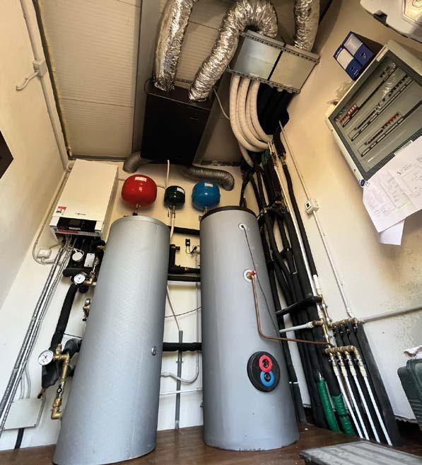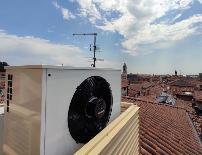 L’acqua calda sanitaria e il riscaldamento invernale sono assicurati da pompe di calore elettriche. La pompa per l’ACS, con potenza di 1,95 kW, è localizzata nel bagno al primo piano ed è dotata di un piccolo serbatoio di accumulo, mentre quella per il riscaldamento (8,5 kWt), del tipo aria/aria, fornisce energia a un sistema di ventilconvettori interni, posti nei vari locali e scelti per la rapidità nel portare gli ambienti alla temperatura desiderata. L’energia per il funzionamento di entrambi i sistemi è assicurata da due campi fotovoltaici da 7,29 kWp, instal-