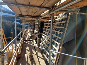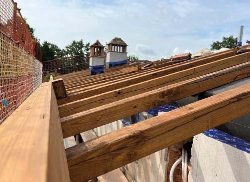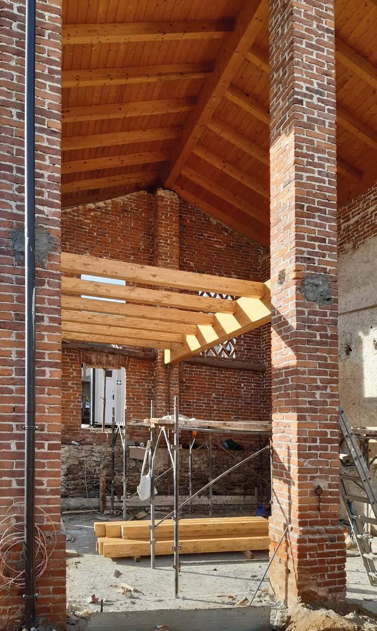 Le nuove strutture dei solai interni e del ballatoio e la struttura in legno dell’ampliamento.