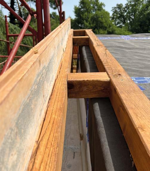 4 listelli verticali in abete (40x50 mm) per ventilazione intercapedine e fissaggio lattoneria