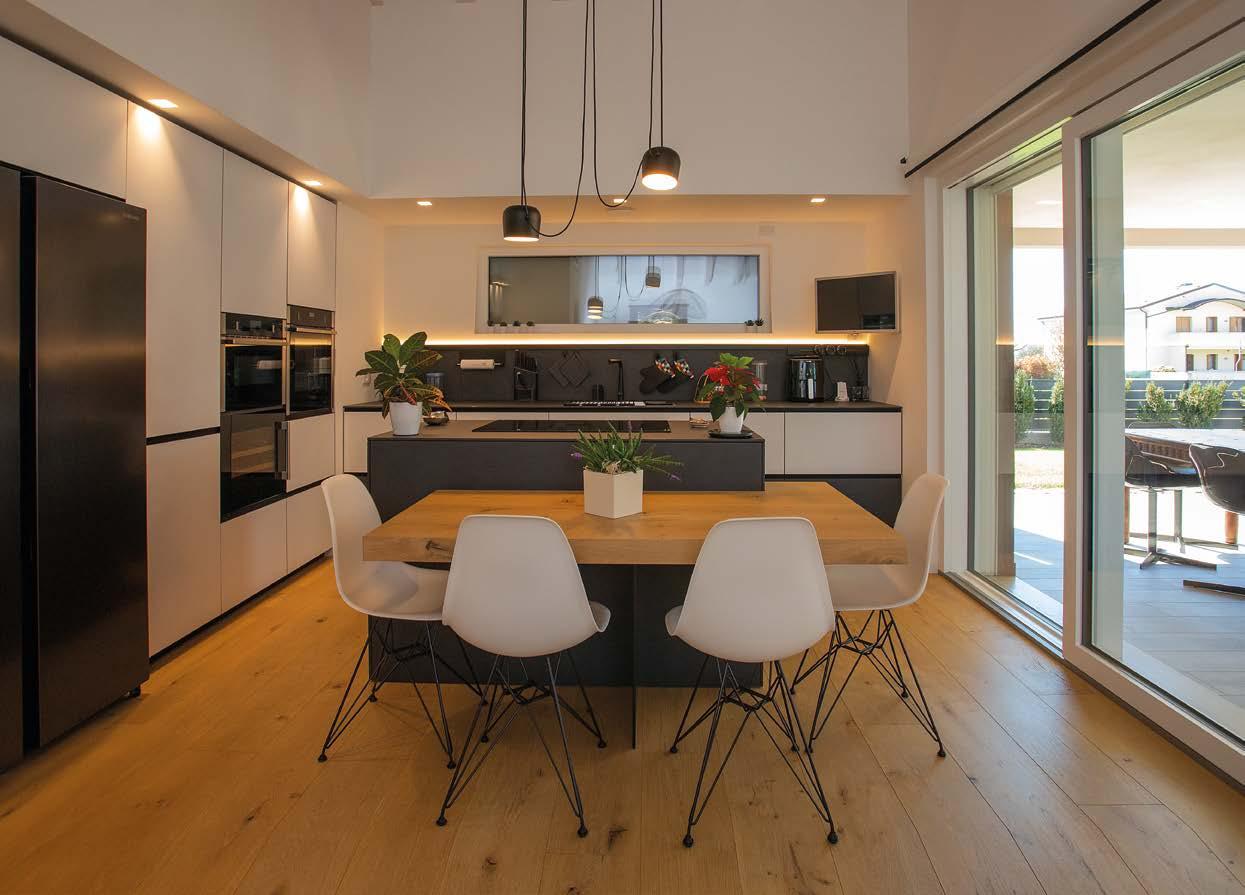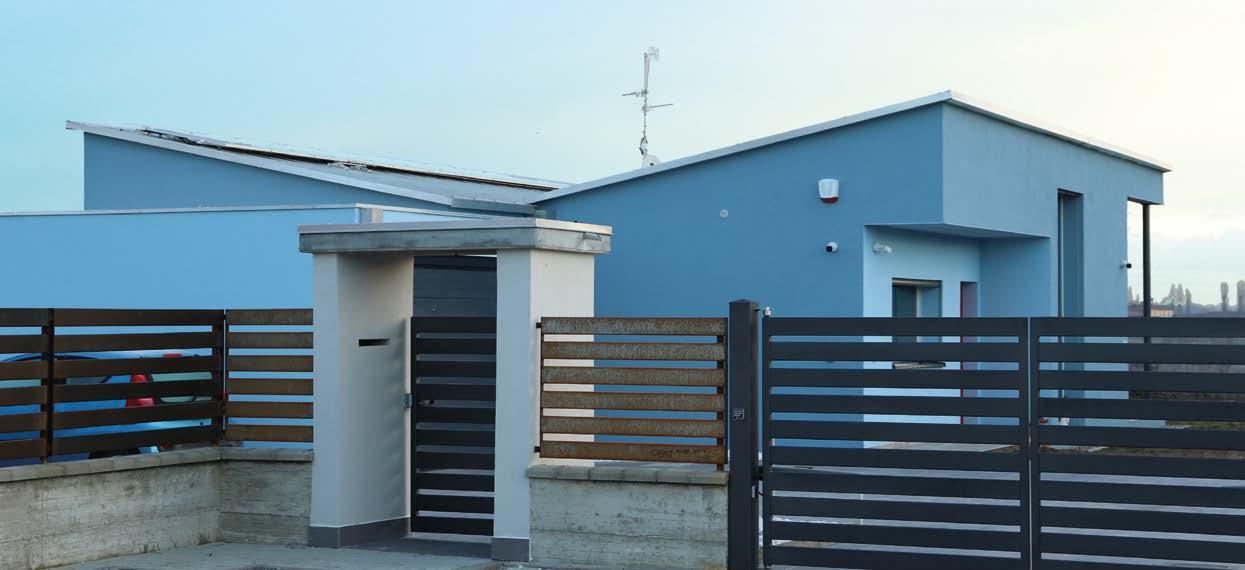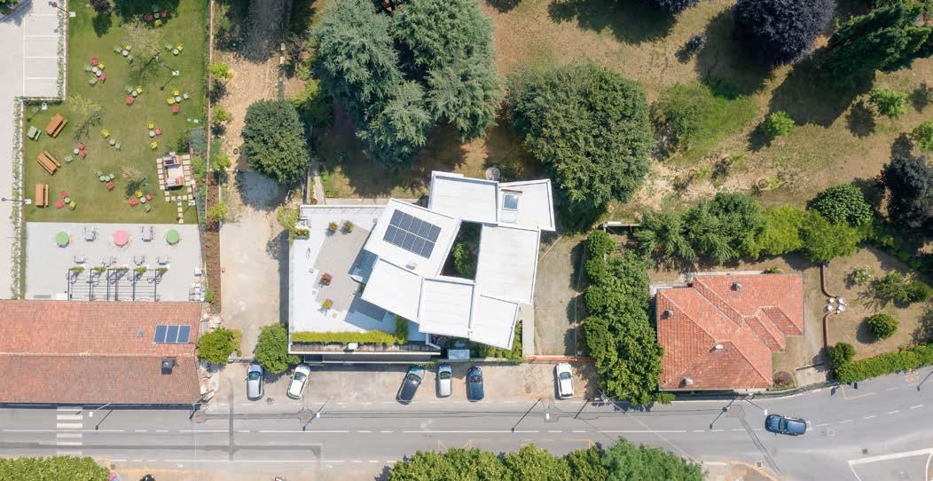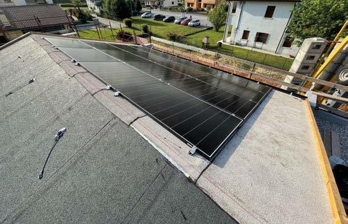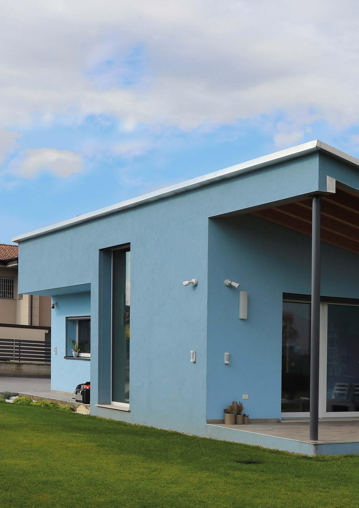 lati sul tetto con esposizione sulle falde est e ovest per garantire la massima copertura. L’eccedenza di energia elettrica è immagazzinata in un sistema di accumulo a servizio della casa nelle ore notturne o per la ricarica di un veicolo elettrico.