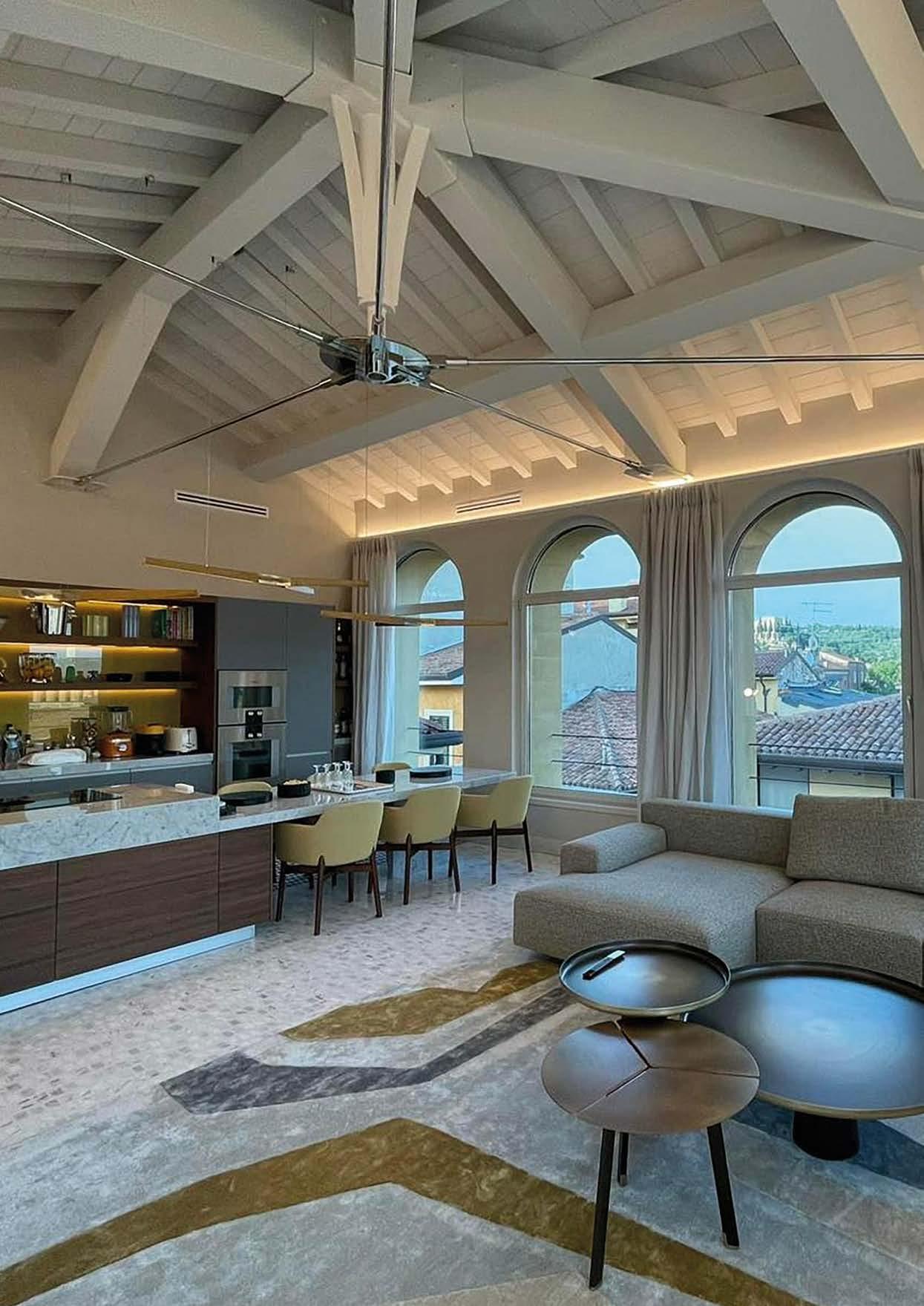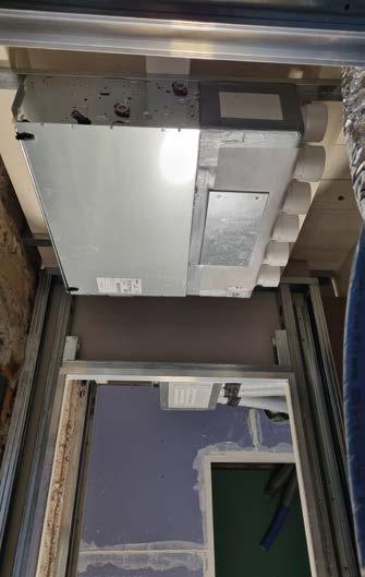 Il ricambio d’aria è assicurato con un sistema di ventilazione meccanica controllata puntuale localizzato nelle varie camere e programmabile sia in serie sia individualmente. Tale scelta, rispetto a un impianto centralizzato, è stata dettata dalle difficoltà di portare le condutture dell’aria nei singoli locali.