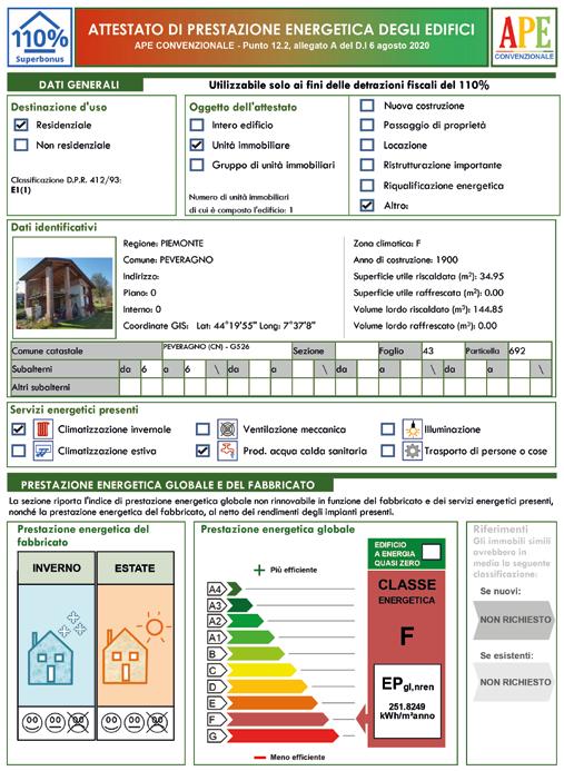 Nei due attestati è possibile notare il dato di prestazione energetica non rinnovabile del fabbricato prima dell’intervento di riqualificazione pari a 251,8249 kWh/m2 anno a fronte di un dato raggiunto post riqualificazione di Epgl,nren di 1,42 kWh/m2 anno.