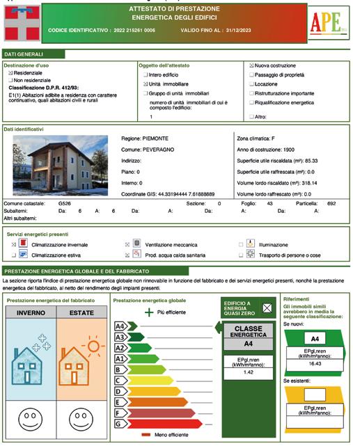 Prestazione energetica globale del fabbricato EPgl,nren 1,42 kWh/m2 anno