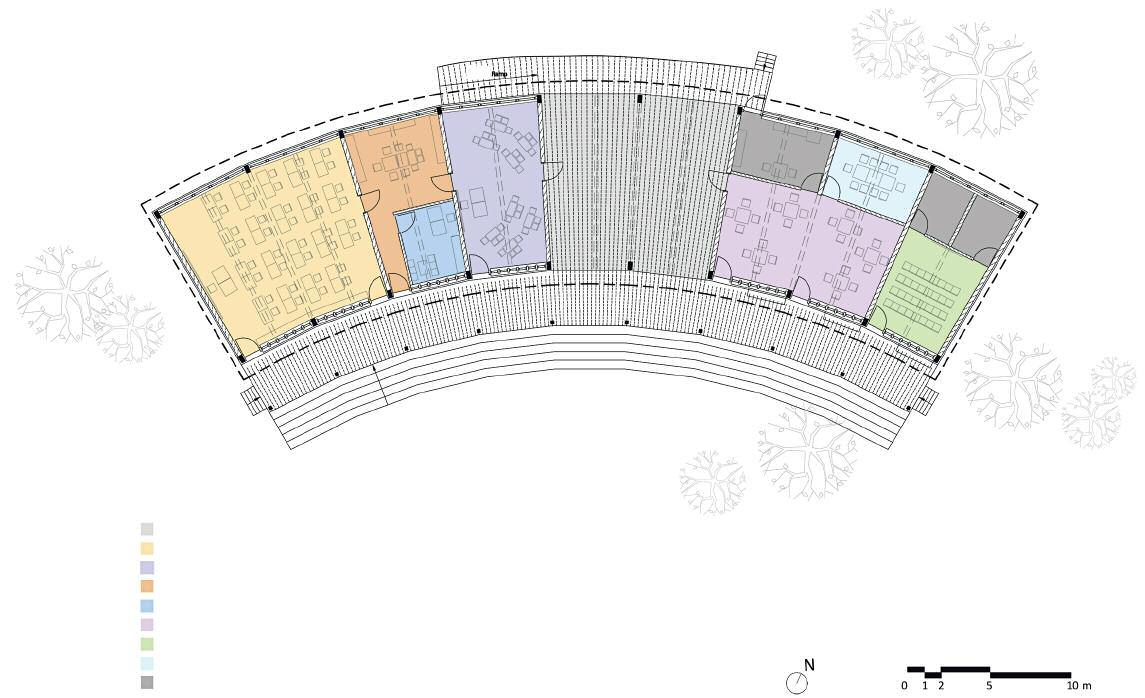Uno dei primi esempi di edificio multipiano con struttura portante in bambù, con cui sono state realizzati anche i tamponamenti e tutte le finiture