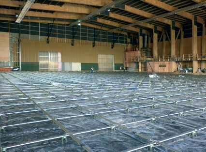 La struttura portante del solaio è costituita da travi primarie in legno massiccio che sorreggono il solaio del tipo “Brettstapel”; su di esso, quasi 40 cm di isolamento in fibra di legno garantiscono, assieme allo strato verde della copertura, un buon isolamento dell’ambiente sottostante Immediatamente sopra l’isolamento, un tavolato separatore funge da appoggio per gli strati superiori filtrante e drenante Come visibile nelle immagini sottostanti, il terreno della copertura a verde estensivo è contenuto da lamiere forate perimetrali