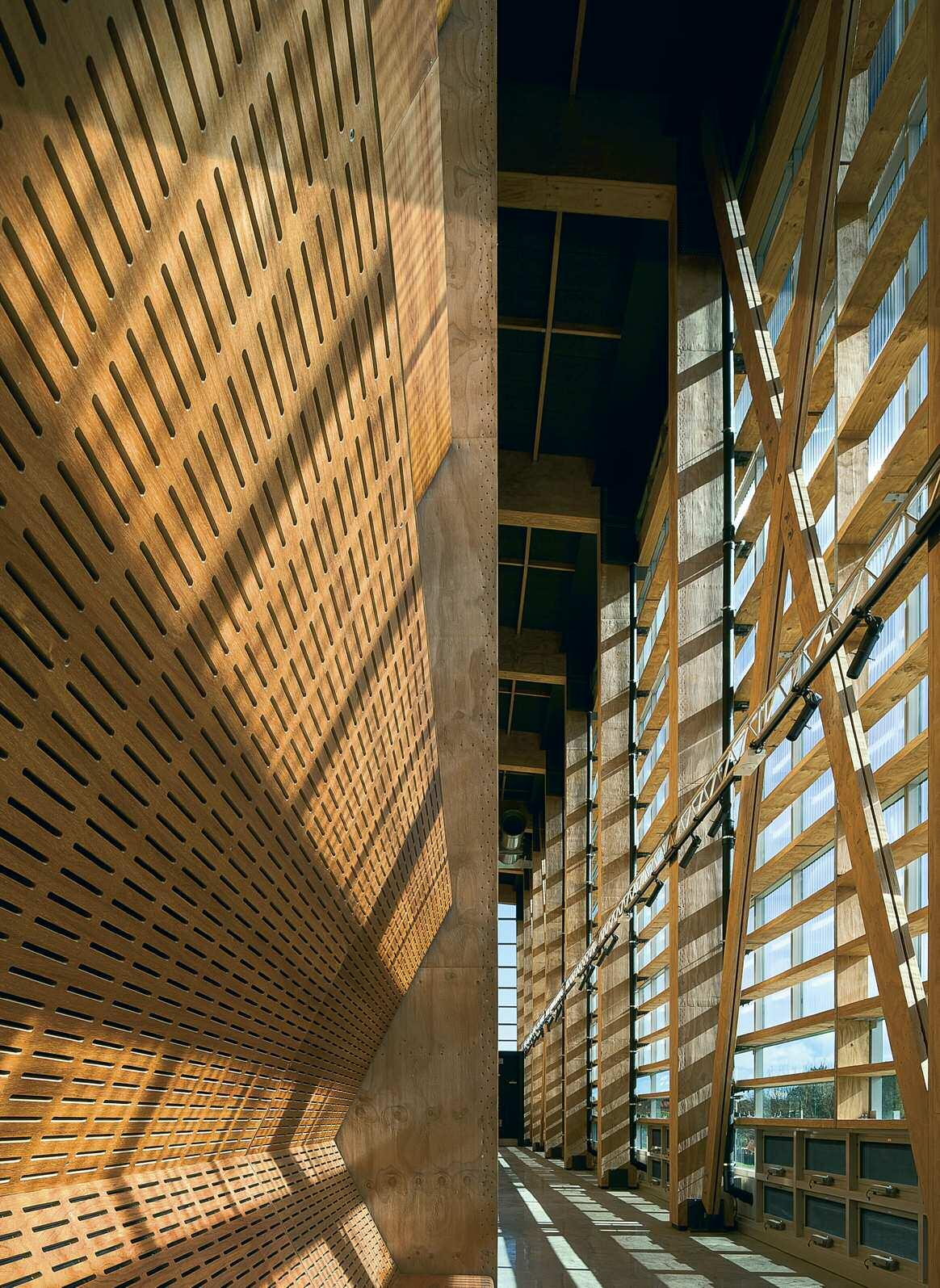 Avete utilizzato il legno in molti progetti: quali sono, secondo voi, le potenzialità di questo materiale? Il legno ha in sé un significativo numero di vantaggi: l’andamento delle fibre e le venature sono intrinsecamente belle; il materiale è duraturo anche in ambienti salmastri; è leggero e la massa inferiore può consentire di ridurre i requisiti statici delle fondazioni dell’edificio, è semplice da lavorare, è facile e flessibile per i costruttori che operano con esso, ha buone prestazioni in caso di incendio Soprattutto ha un basso contenuto di energia incorporata e può agire, a seconda della sua origine, come serbatoio naturale di anidride carbonica (come nel caso del MOTAT Aviation Display Hall)