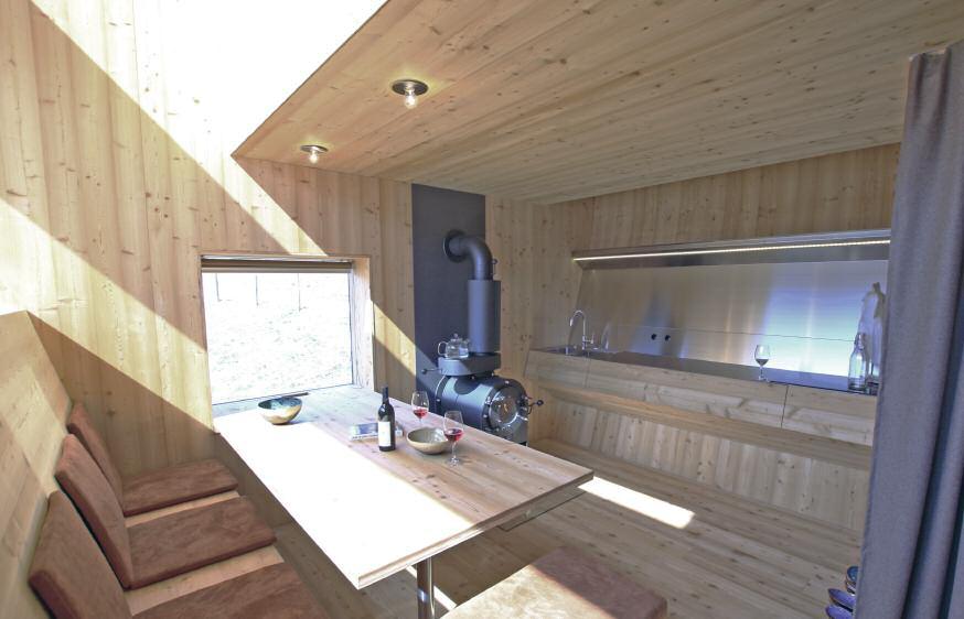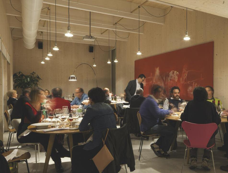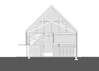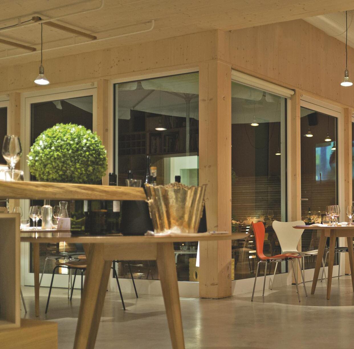 La nuova struttura è stata progettata secondo il concetto “edificio nell’edificio” recuperando e ristrutturando il guscio del fienile esistente e suddividendo gli spazi interni con grandi pareti vetrate che lasciano filtrare la luce naturale all’interno e consentono, aprendosi, di ventilare le zone lavorative Il rivestimento interno ed esterno in legno amplifica le caratteristiche tradizionali e innovative del fabbricato.