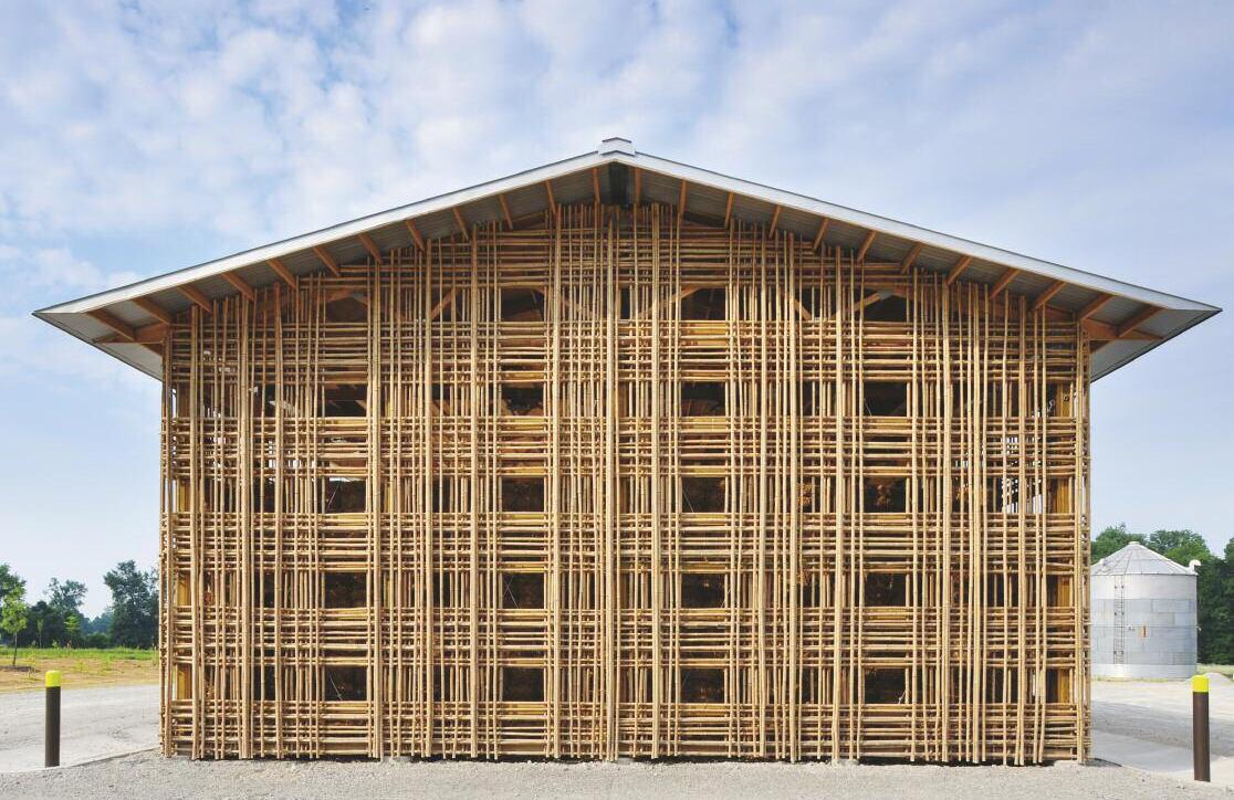 Nel Mason Lane Farm Operations Facility avete utilizzato bambù che cresce spontaneamente a poche miglia di distanza dal sito per creare un reticolato in facciata dalla duplice funzione estetica e operativa, reinterpretando la forma vernacolare del granaio. Perché avete scelto il bambù per una delle due strutture e in che modo l’avete impiegato?