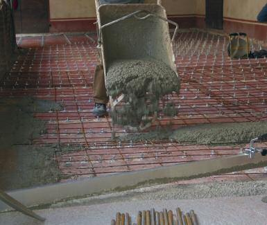 La fase di getto della soletta, dopo la posa della rete elettrosaldata con sovrapposizione di maglie tra un foglio e l’altro