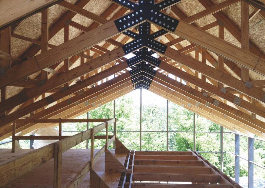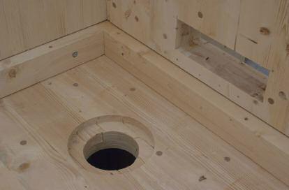 Il progettista ha scelto di creare un solaio alla Sansovina, con travi in legno e tavole sovrastanti poste in direzione parallela alle travi stesse I connettori risultano così posati direttamente sulla trave Per queste applicazioni Tecnaria ha sviluppato una gamma di altezze differenti dei propri connettori.