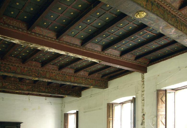 Solaio a doppia orditura dal basso con i travi principali e i travetti secondari orditi trasversalmente
