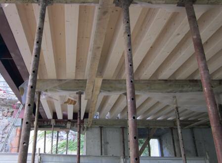 Vista del solaio dal lato inferiore. Molto spesso è necessario puntellare il solaio per tutta la durata della maturazione del calcestruzzo