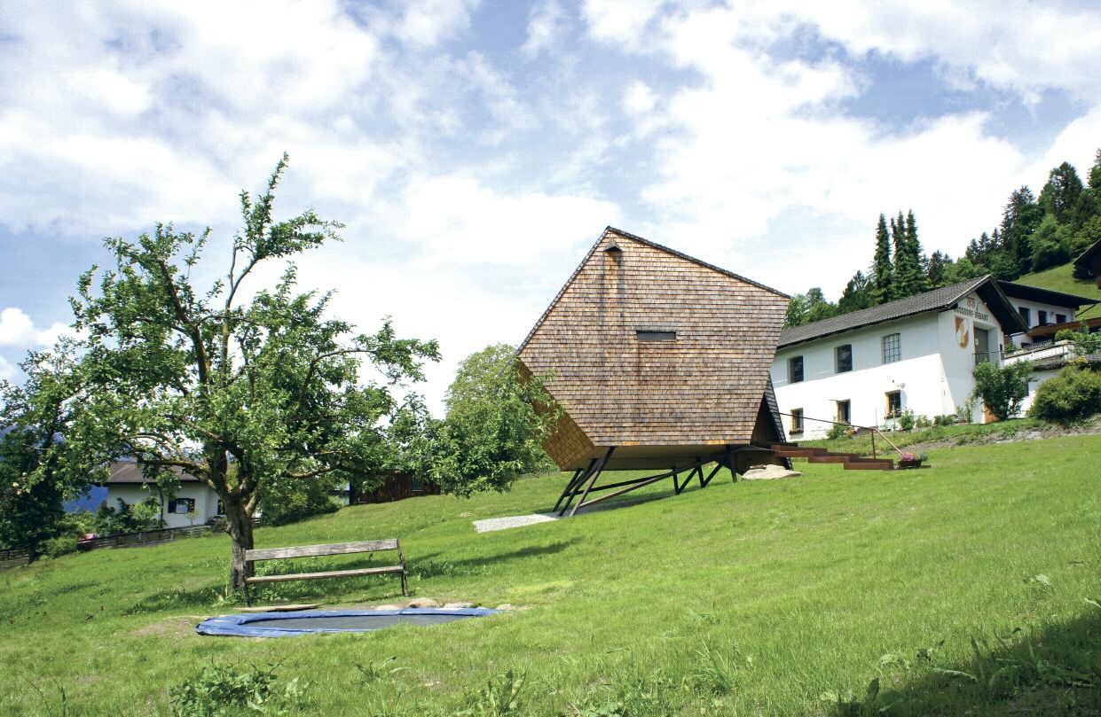 Il complesso si caratterizza per il rivestimento della facciata del fienile (una struttura a telaio in legno), realizzata con un materiale, il bambù, raro nella tradizione costruttiva locale, ma a crescita spontanea nelle vicinanze del sito