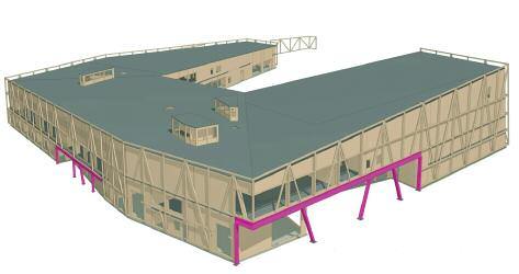 Schema di una parte del telaio ligneo della porzione espositiva di La Cité du Vin; ogni arco ha una dimensione specifica.