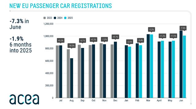 Nel primo semestre del 2025, le immatricolazioni di nuove auto nell’Unione Europea hanno registrato un calo dell’1,9% rispetto allo stesso periodo del 2024, con una contrazione marcata del 7,3% nel solo mese di giugno. Questi dati, diffusi dall’Associazione europea dei costruttori di automobili (ACEA), riflettono le difficoltà dell’attuale contesto economico globale per il settore automobilistico.