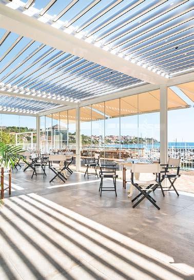 Ecco una delle realizzazioni più recenti e significative, per il mondo della ristorazione, firmata Gibus. Nell’immagine, si vede la sala esterna del ristorante Vespero di Piombino, da poco inaugurato, con la sala esterna protetta e valorizzata da una pergola bioclimatica fotovoltaica, con vetrate scorrevoli, di Gibus. La terrazza del ristorante, esposta a Sud, è sotto i raggi del sole praticamente tutto il giorno. Con la pergola E-Twist è possibile accogliere i clienti a qualunque ora, garantendo loro comfort e utilizzando la luce che filtra come elemento integrante del progetto. Le lame frangisole orientabili sulla copertura della pergola sono inoltre equipaggiate con moduli fotovoltaici, che consentono di ridurre il consumo energetico del ristorante. Anzi, l’elettricità autoprodotta viene utilizzata per alimentare le macchine e l’illuminazione del bar.