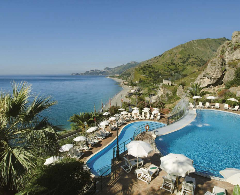 sta mare, due sale ristorante e un centro benessere, oltre a una sala congressi. La spiaggia è a duecento metri dalla struttura, e nelle vicinanze sono disponibili attività come diving, tennis e parapendio. Taormina e l’Etna sono facilmente raggiungibili. Il ristorante con terrazza Solemoro propone cucina locale a buffet. La posizione dell’hotel è ideale per visitare Taormina e borghi come Forza D’Agrò e Savoca. Presto l’offerta di CDSHotels si arricchirà di una nuova struttura. Al resort di Terrasini e al Baia Taormina si aggiungerà infatti il CDSHotels Le Castella Ninfe Saracene, di recente acquisizione da parte della catena. L’hotel aprirà i battenti nel 2026 in Calabria, lungo la bellissima Costa dei Saraceni.