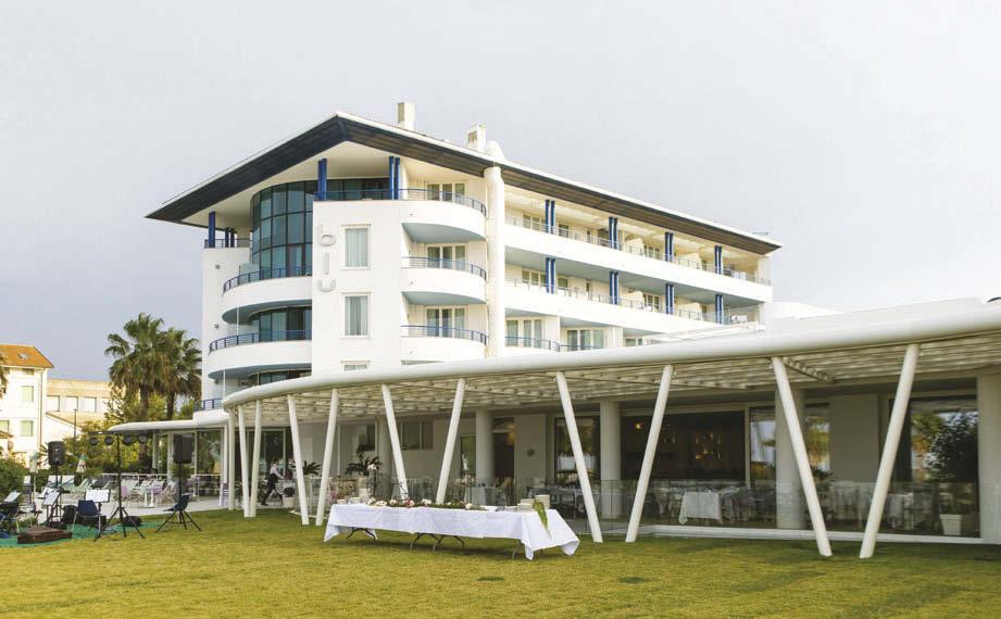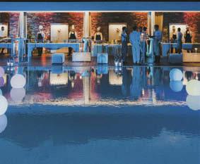 Non solo ambienti indoor: il fiore all’occhiello sono gli spazi esterni, dalla terrazza panoramica di mille metri quadri all’ampio prato a bordo piscina, senza dimenticare la spiaggia privata, cornici perfette per un lancio di prodotto, una sfilata o una cena di gala. Gli ambienti versatili (che vantano anche tre ristoranti e quattro bar) accolgono al meglio anche le svariate proposte di un catering di qualità e personalizzabile, per