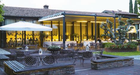 con camino, dipinti alle pareti e un magnifico tavolo ovale per una dozzina di persone, ideale per riunioni di board. Infine la sala Tuffetto, molto scenografica col suo affaccio sulla piscina e altri 25 posti. Un doveroso sguardo infine alla ristorazione: se ne occupa Ardea Purpurea (dal nome dall’airone rosso che abita l’oasi del lago) che provvede a menù ricercati serviti nella sala da pranzo sospesa sulle acque del laghetto, ma anche alla preparazione di coffee break, light lunch, aperitivi e serate di gala. A completare il tutto, oltre alle piscine, la spa con trattamenti, la palestra, la possibilità di abbinare esperienze dalle escursioni in bici ai tour in barca, dalle cooking class alla degustazione dei celebri vini della zona come Valpolicella, Lugana e Bardolino o di rilassarsi semplicemente nel fornitissimo lounge bar con un drink tra le mani ad ammirare il tramonto.
