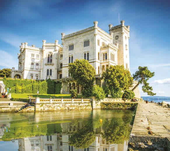 A pochi chilometri dal centro storico, sulla cima di un promontorio affacciato sul Golfo di Trieste, sorge il Castello di Miramare. Costruito tra il 1856 e il 1860 per l’arciduca Ferdinando Mas-