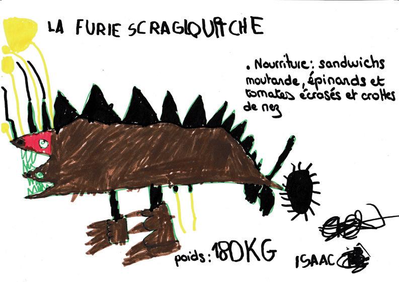 1. LA FURIE SCRAGLOURCHE. Nourriture : sandwichs moutarde, épinards et tomates écrasés et crottes de nez. Poids : 180 kg.