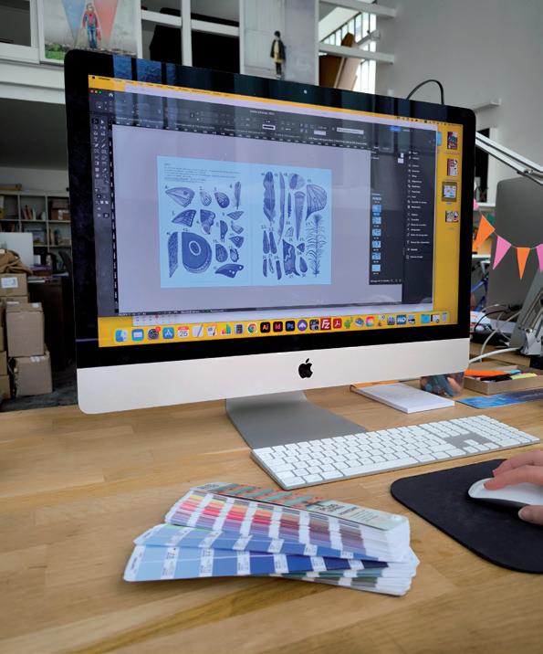 Le rôle de notre cheffe de fabrication* et de notre photograveur* est de trouver les bons réglages pour que les couleurs imprimées correspondent le plus possible aux illustrations d’Éva.