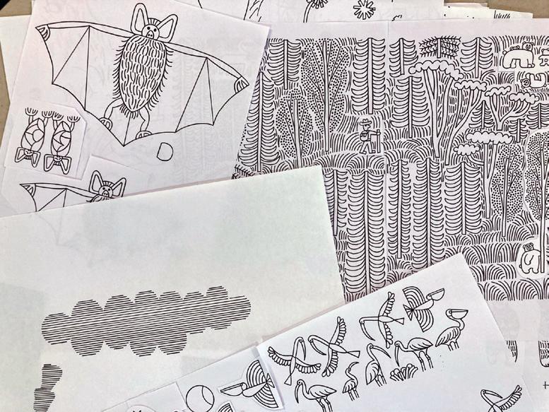 Pendant ces vingt-quatre mois, notre rôle d’éditrices est d’accompagner Éva pour l’aider à améliorer les images et les textes de l’album. Nous échangeons à l’occasion de longues réunions. C’est un travail passionnant au fil duquel, petit à petit, le livre prend forme.