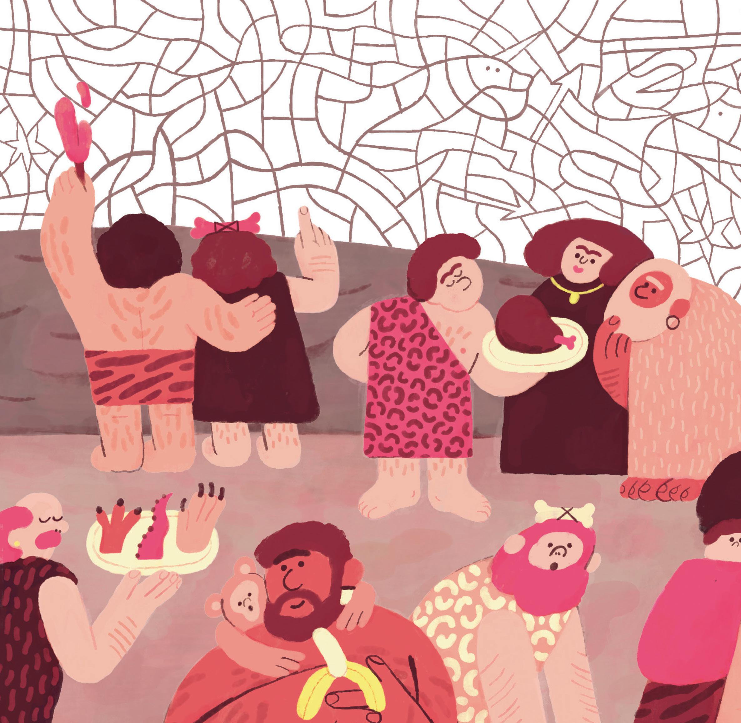 Idée à faire avec de la peinture : reproduis sur différentes feuilles les motifs des peaux d’animaux avec lesquelles les personnages sont habillés !