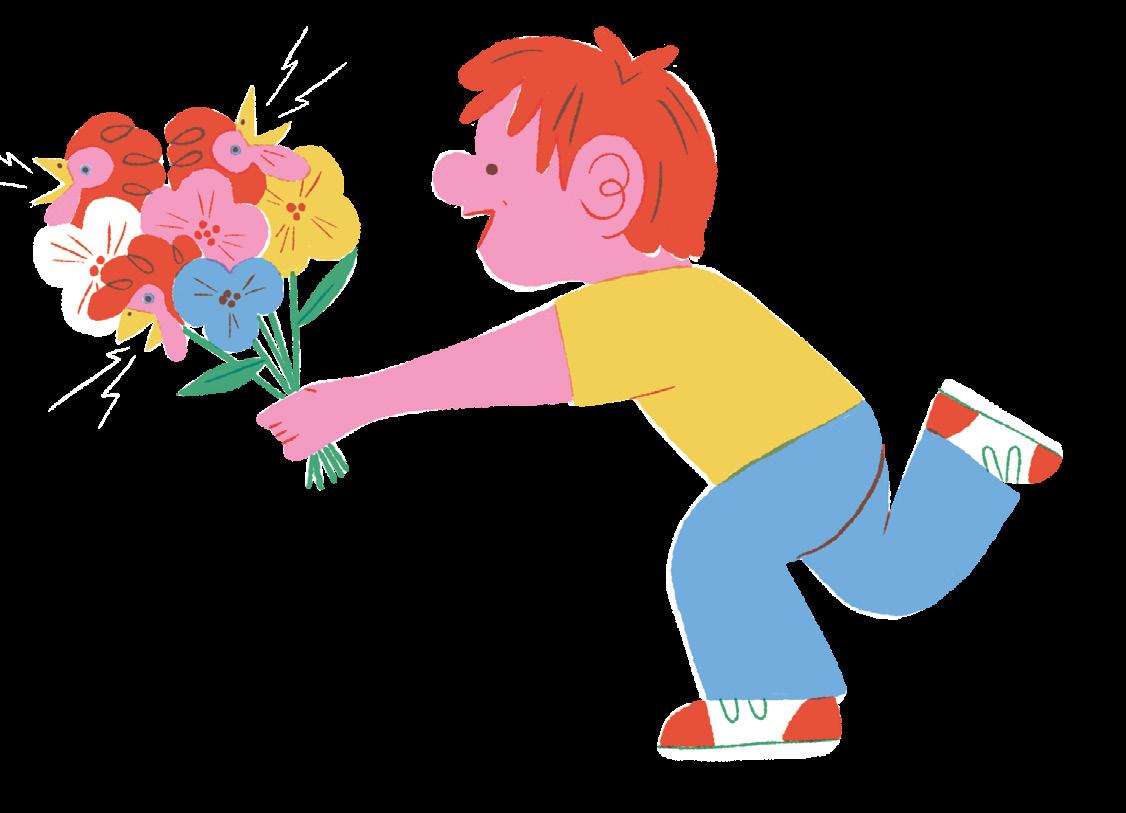 On o re des bouquets aux gens qu’on aime pour leur faire plaisir.