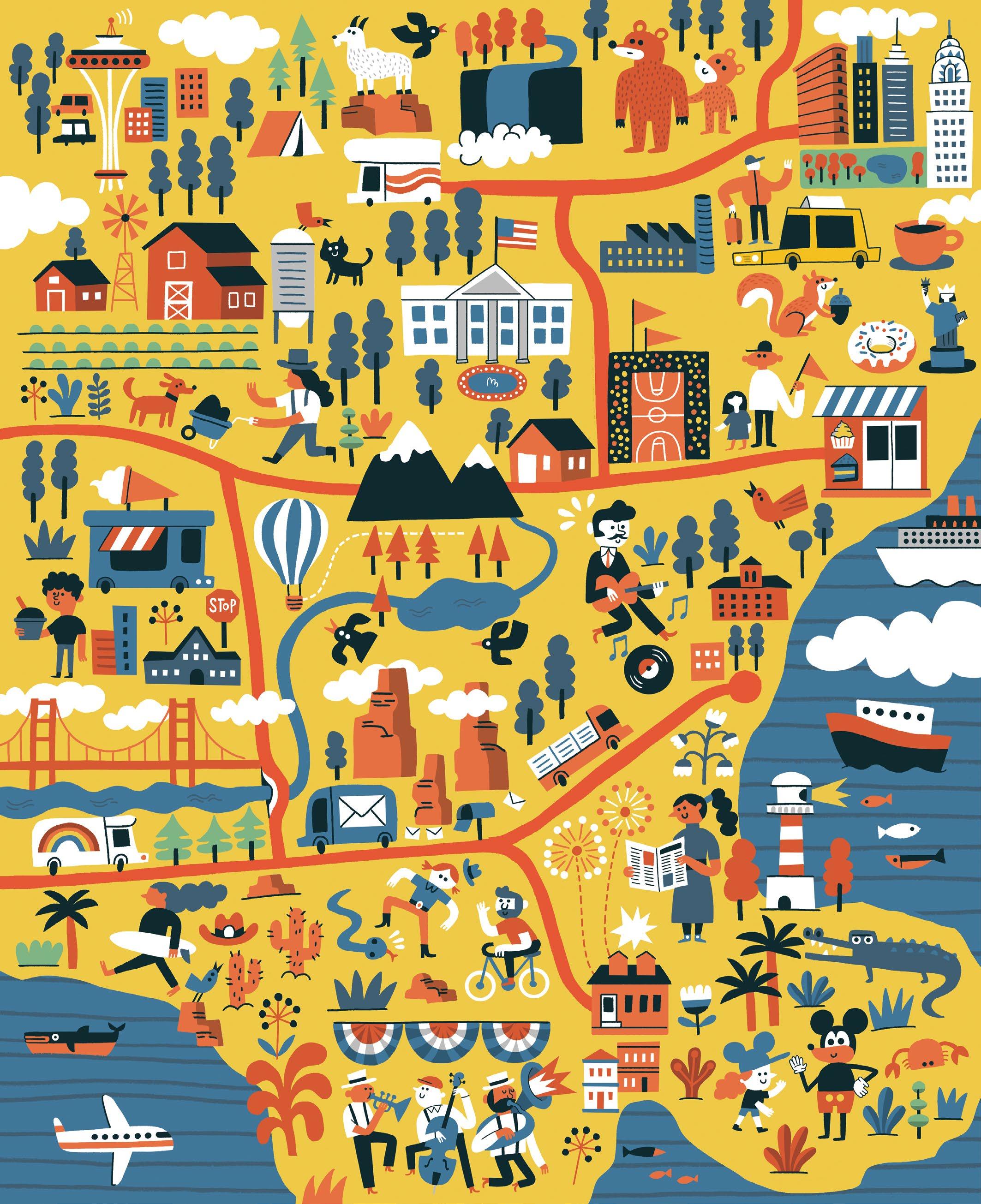 Retrouve dans l’image des États-Unis les éléments suivants :