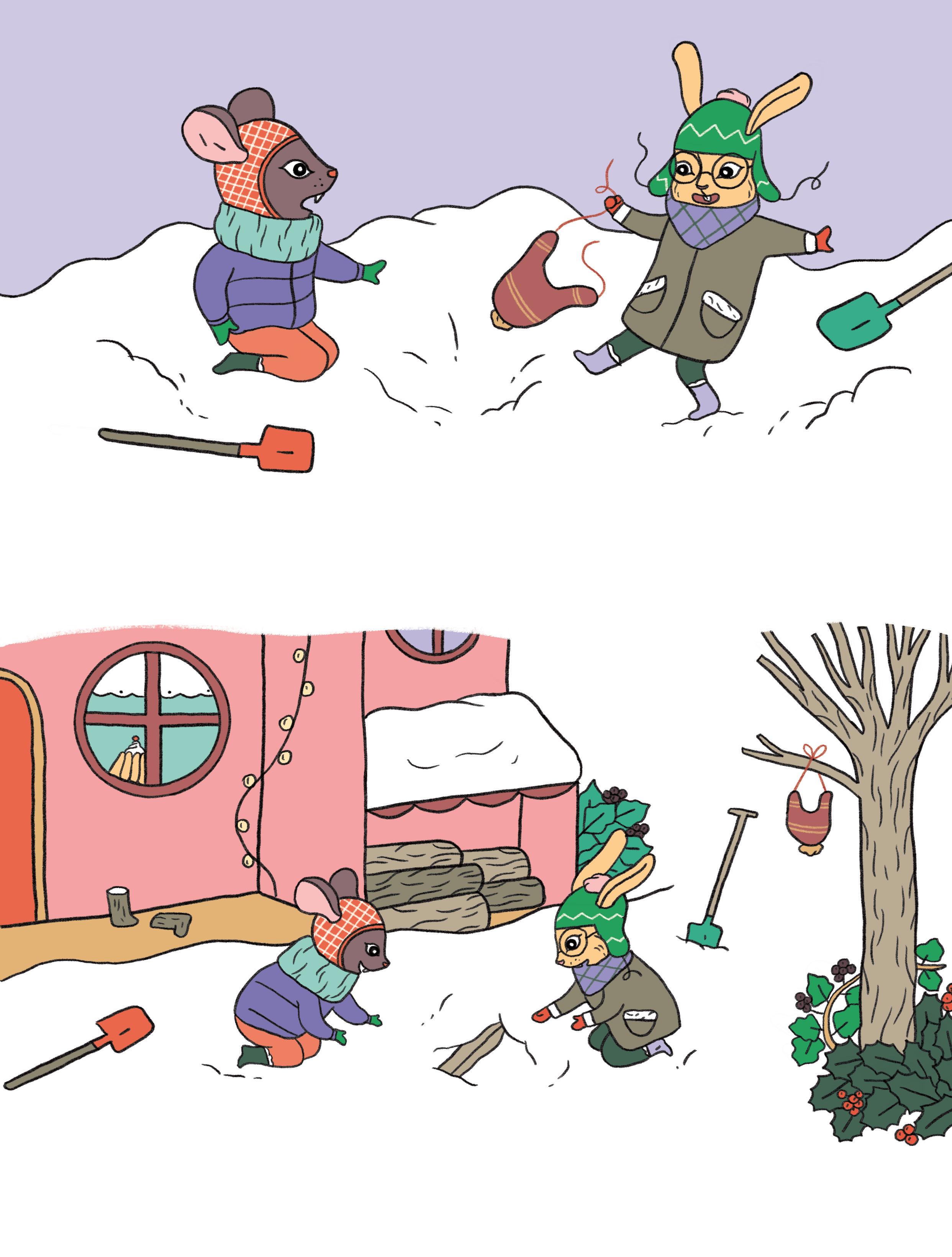 « Cherchons de plus belle. » De la neige plein leurs bottes fourrées, les amis explorent un peu plus loin.