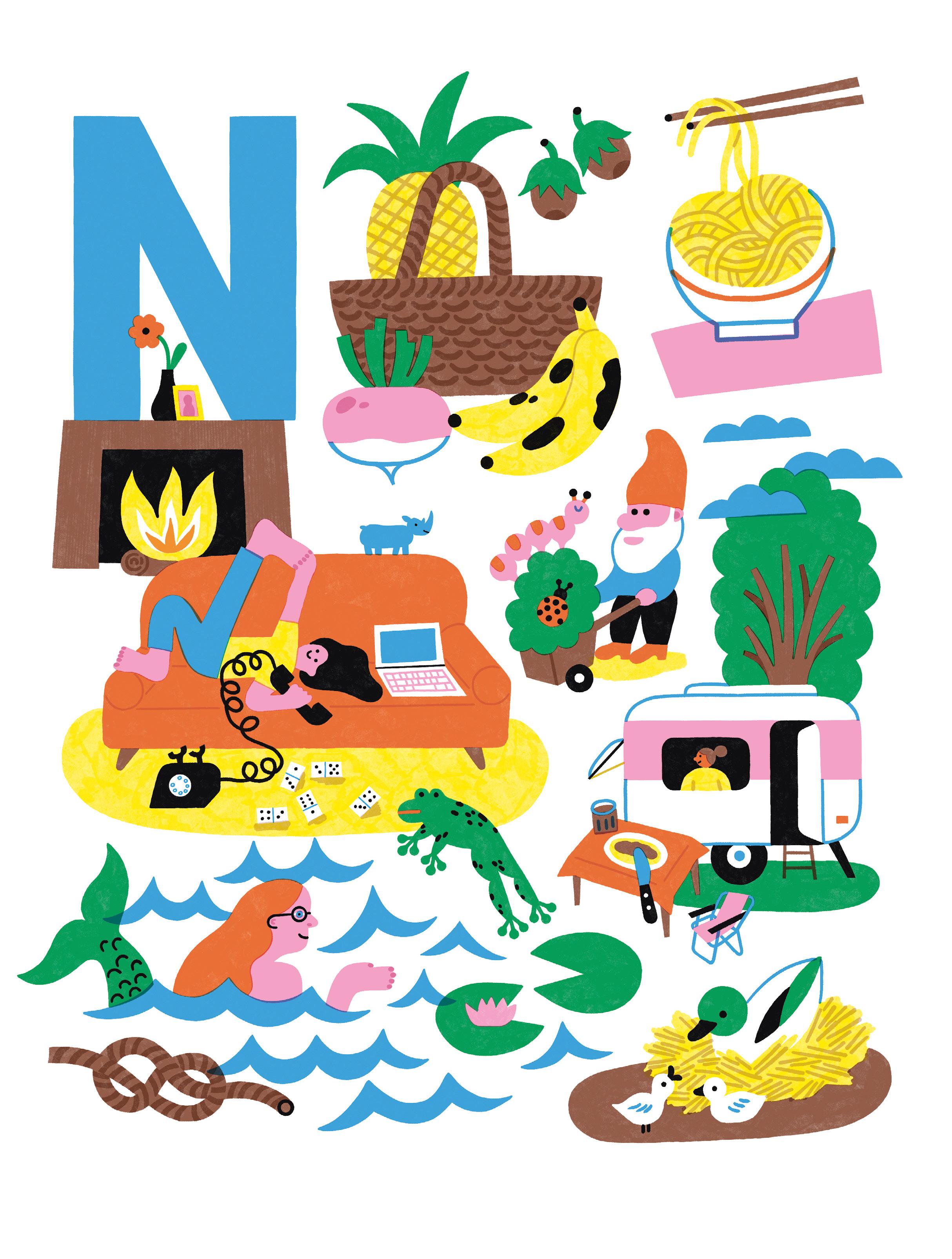 Trouve dans l’image le plus de mots dans lesquels tu entends le son « n ».