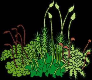 Les mousses, ou bryophytes, ouvrent un nouveau chapitre du vivant sur la terre ferme. Capables d’absorber l’eau sans avoir de racines, directement à la surface de leur corps, elles restent encore très dépendantes de l’eau pour se reproduire.