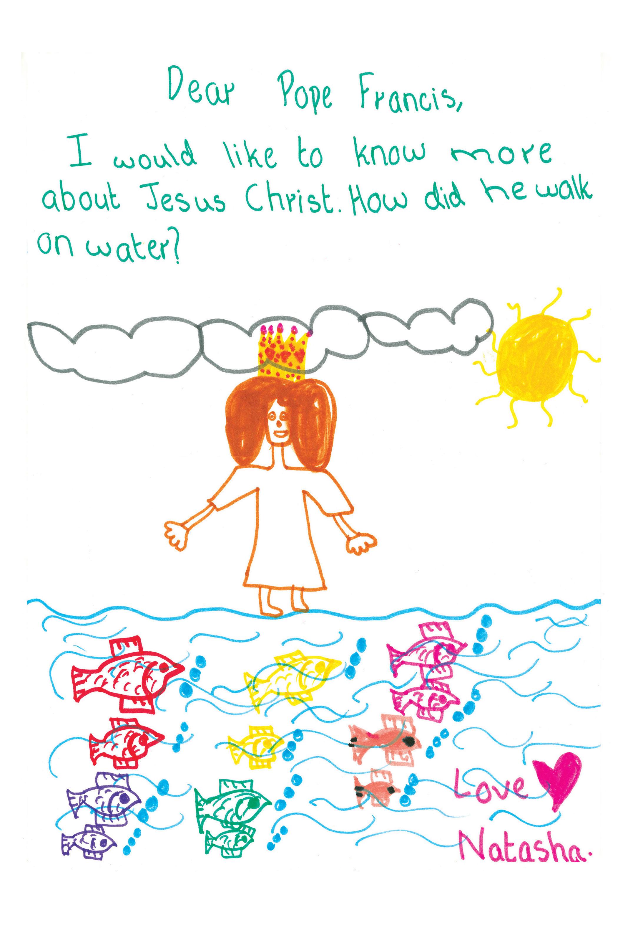 Você deve imaginar Jesus andando naturalmente, normalmente. Ele não voou sobre as águas nem deu cambalhotas enquanto nadava. Ele andou como você anda, um pé após o outro, como se a água fosse terra. Ele andou sobre as águas e viu os peixes nadando felizes e velozes embaixo de seus pés.